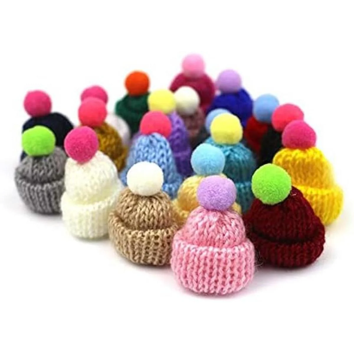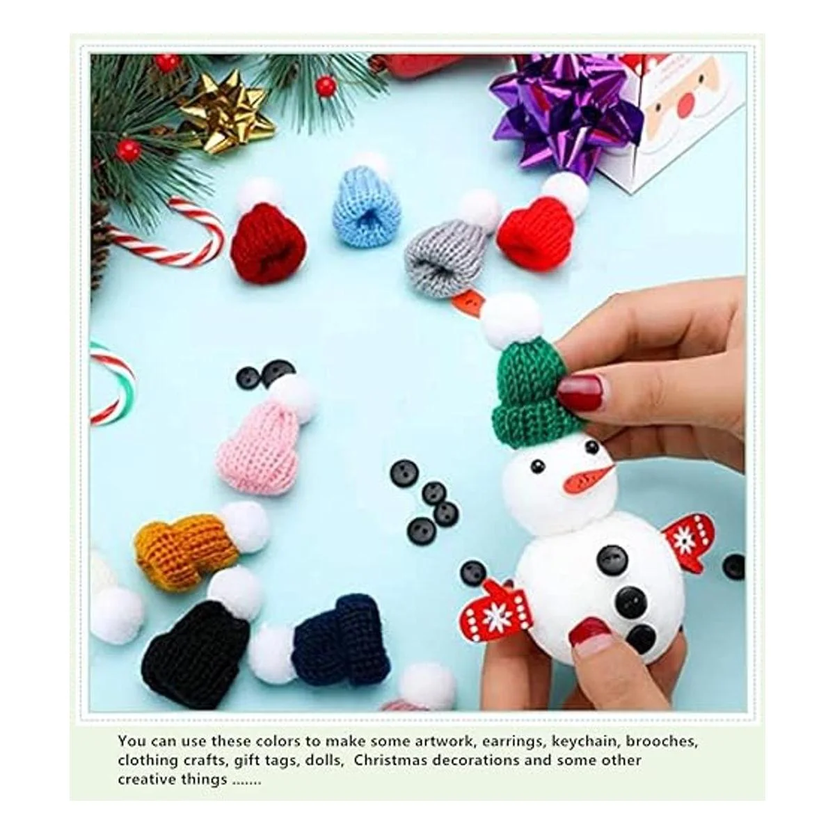48 mini sombreros de punto de Navidad, mini sombreros de hilo de lana, adornos para árbol de Navidad, lindo sombrero de muñeca, accesorios para el cabello, fabricación de joyas, arte artesanal, colores surtidos