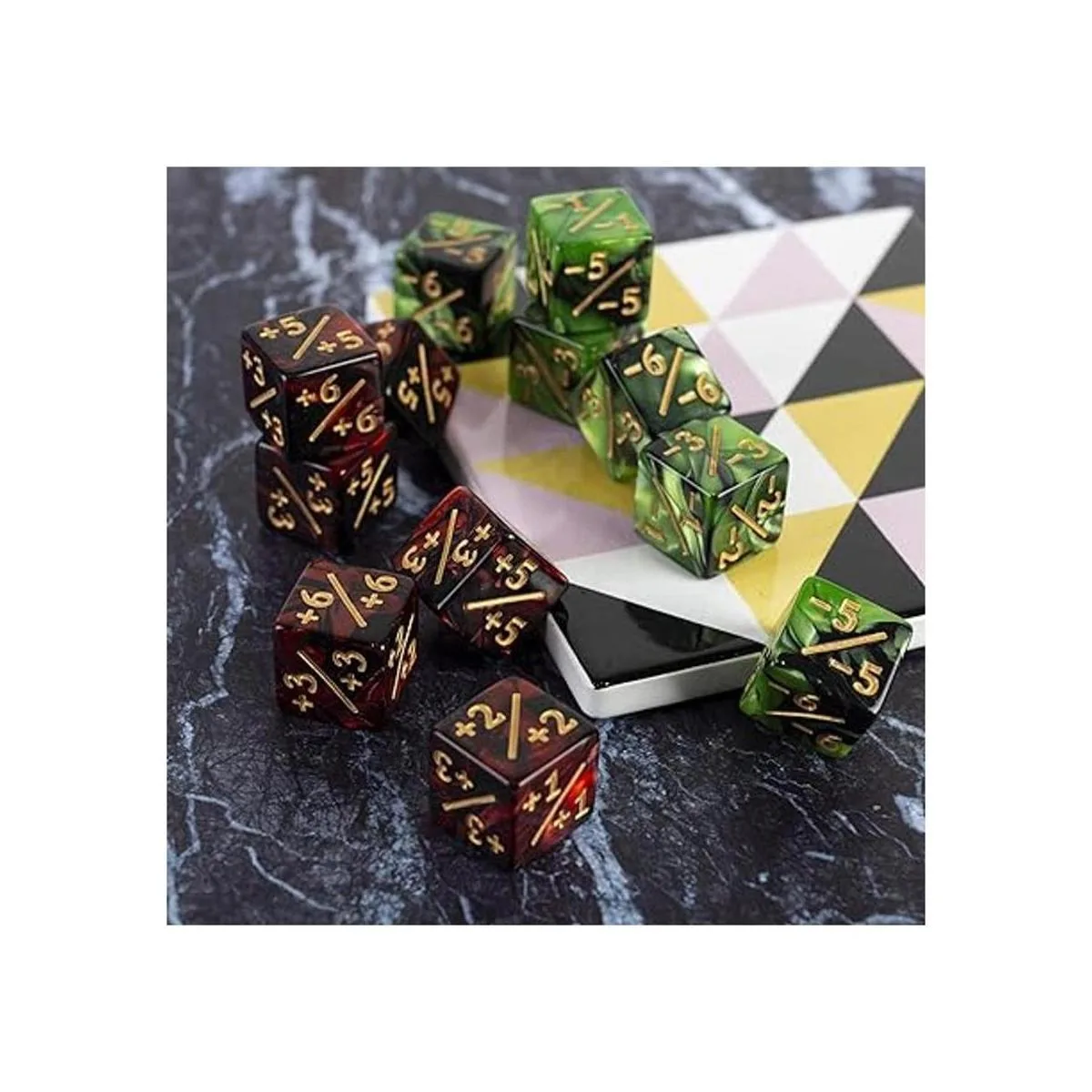 Diseño creativo: el diseño de rubí y esmeralda es tan diferente que este juego de dados es particularmente llamativo. El elemento de colores mezclados hace que cada dado se vea único.