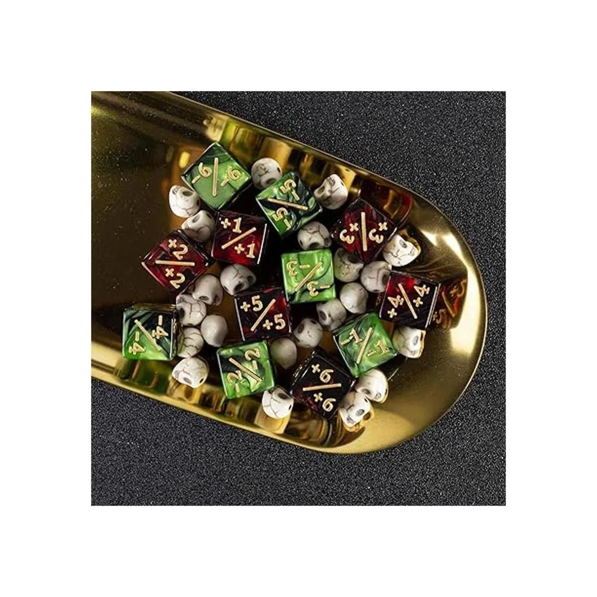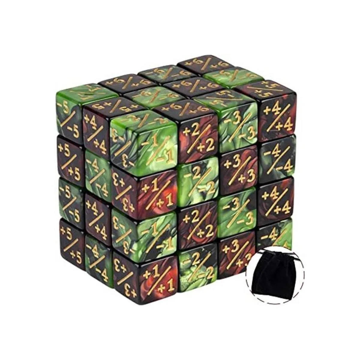 48 piezas de contadores de dados tokens de estadísticas de criatura o dados de lealtad cubo de mármol D6 dados para Magic The Gathering CCG MTG Card Accesorios de juego rubí y negro, esmeralda y negro