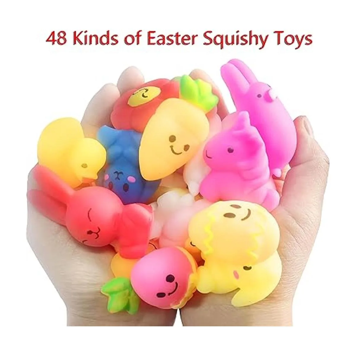 48 piezas de juguetes esponjosos de Pascua Mochi para apretar, minijuguetes para aliviar el estrés y la ansiedad, para recuerdos de fiesta infantil, rellenos de cesta de Pascua Pascua