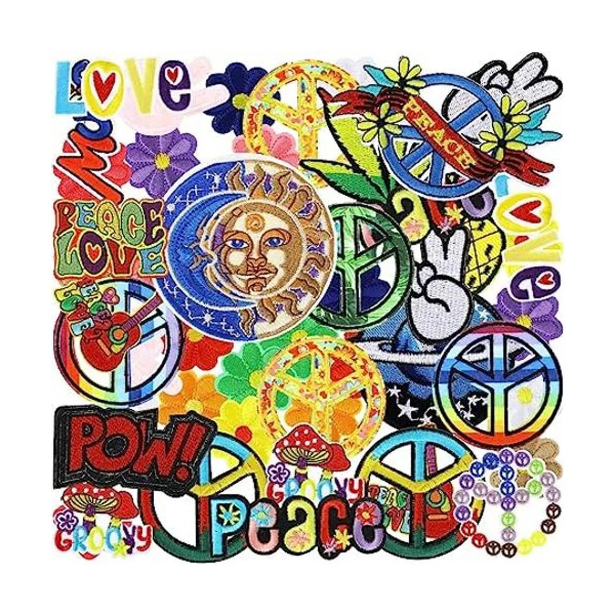 48 piezas de parches bordados hippie vintage al azar, varios estilos, parches estéticos para coser, chaquetas, sombreros, ropa, mochilas, jeans, fiestas de los años 70 estilo lindo