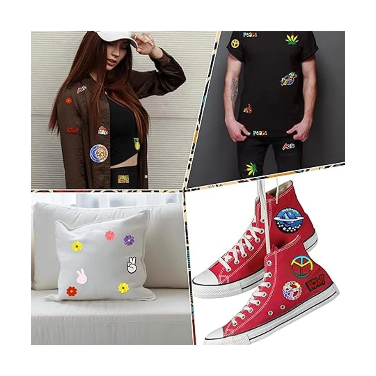 Amplia gama de usos: estos parches de reparación estética son de diferentes tamaños, adecuados para parches o decorar diferentes tipos de telas como camisetas, chaquetas, jeans, camisas, mochilas, etc., lo que los hace más elegantes y elegantes, creando una buena estética personalizada de bricolaje
