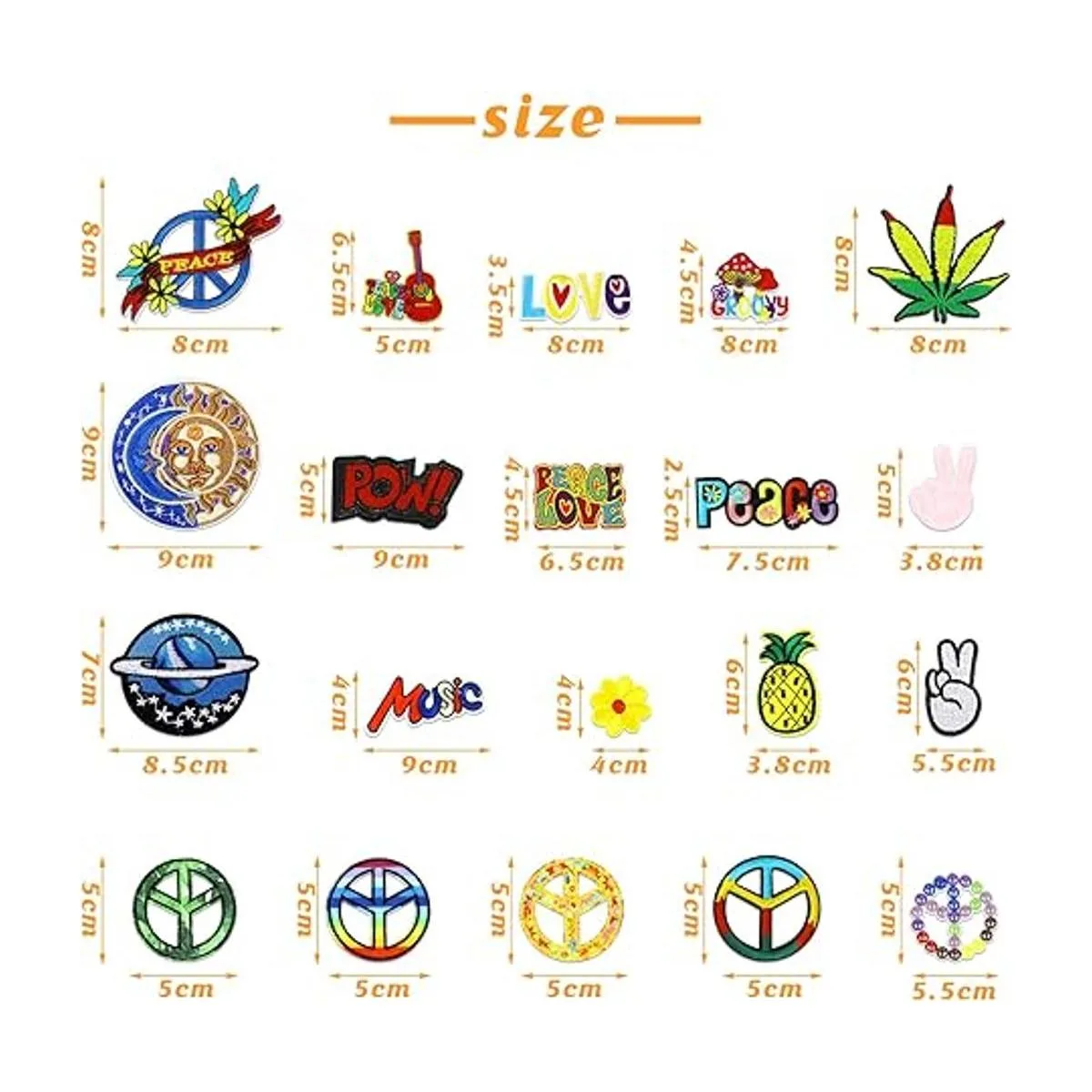 Variedad de estilos: el juego incluye 48 parches hippie vintage para planchar con varias formas y colores ricos; varios diseños añaden más estilos a tu ropa, principalmente parches retro como flores y hongos, los tamaños varían de 1.97 x 3.5 pulgadas a 3.54 x 5.12 pulgadas; para el tamaño detallado de cada parche, consulta la imagen de la izquierda