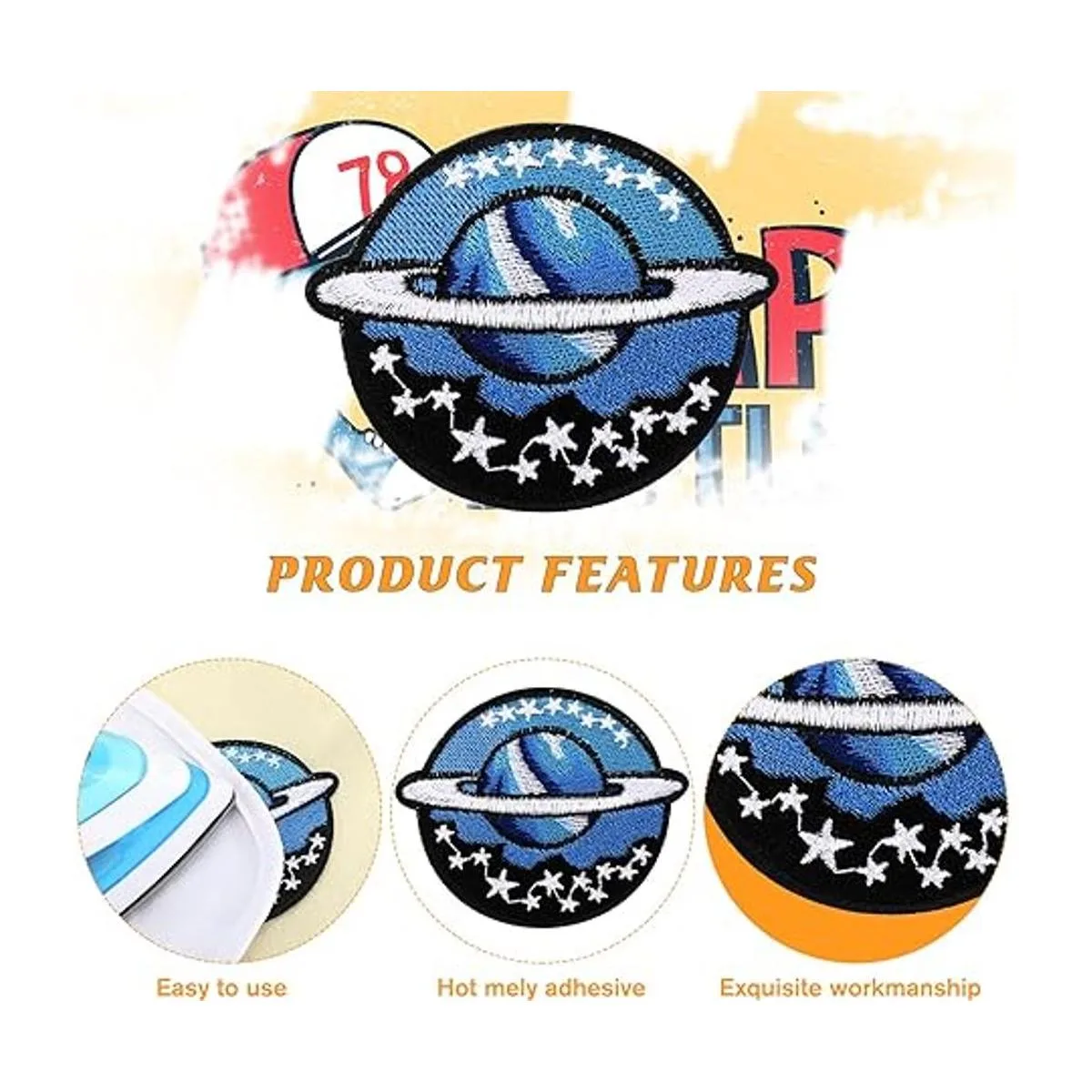 Fácil de aplicar: la parte posterior de los parches bordados está hecha de tela y pegamento caliente; se pueden pegar en la ropa directamente con una plancha, ten cuidado de quitar el pegamento caliente al planchar, también puedes utilizar hilos de coser para coser los subsidios en la tela