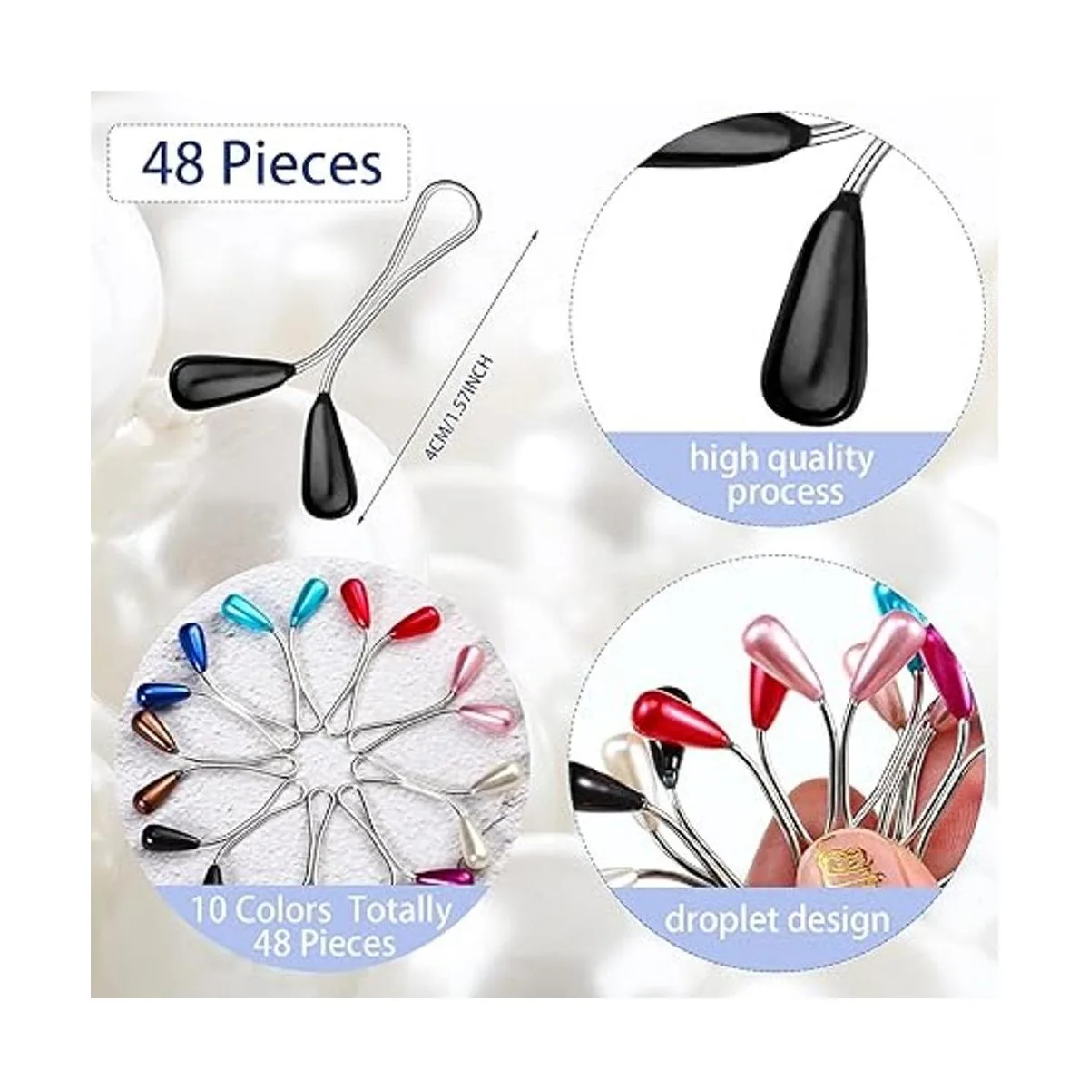 48 pines de hijab para mujer, musulmanas, de perlas sintéticas, broches de bufanda y bufanda en forma de U, broche decorativo de aleación, bufanda de seguridad, pasadores de hijab para vestido de boda, accesorios decorativos de bricolaje, Metal