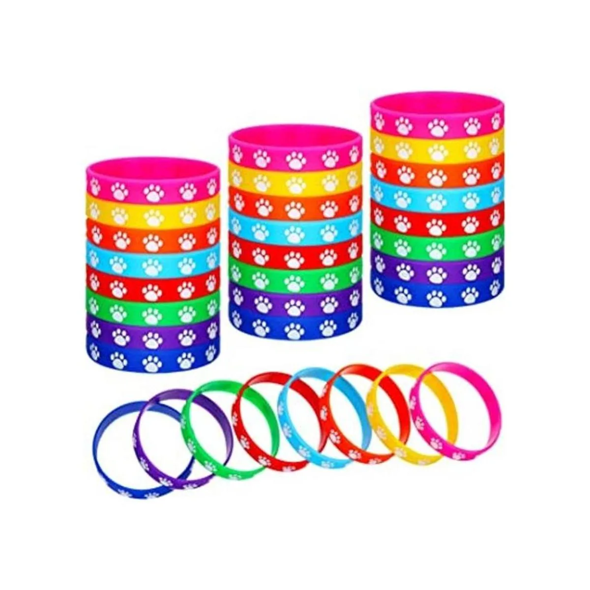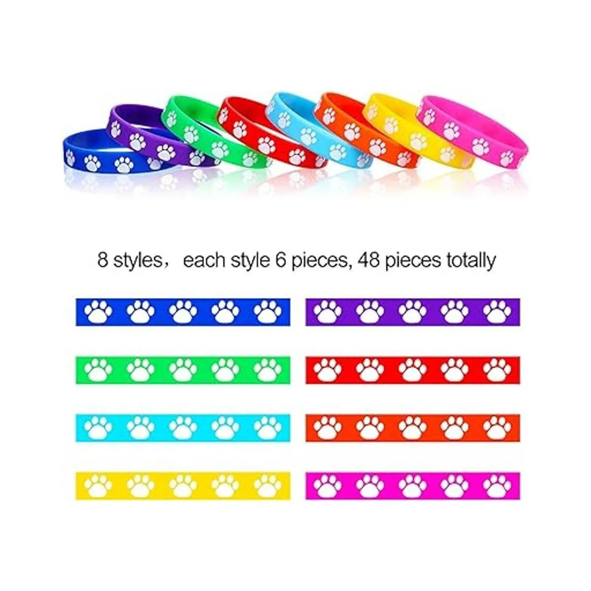 48 pulseras de goma con estampado de patas, pulseras elásticas de silicona multicolor para suministros de fiesta de cumpleaños, Silicona Caucho