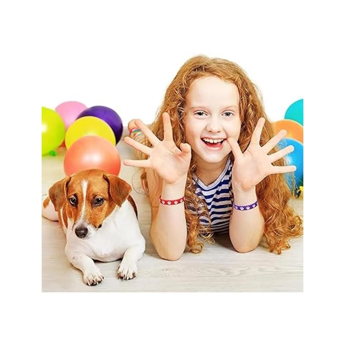 Bonita y vibrante: nuestra pulsera de goma cuenta con adorables huellas de patas contra colores vibrantes, incluyendo rojo, rosa, morado, naranja, verde, azul y azul oscuro, puedes dispersarlas sobre la mesa de fiesta de cumpleaños de tu hijo para levantar la fiesta de cumpleaños temática de mascotas de tu pequeño