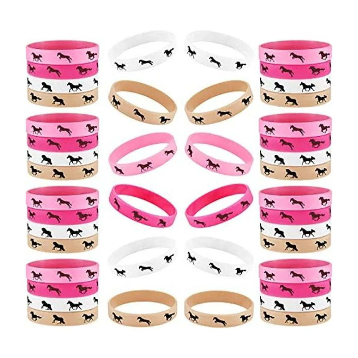 48 unidades de pulseras de goma para fiestas de caballo, pulseras de goma, para caballos, para fiestas de cumpleaños, suministros, Silicona Goma, calcita,
