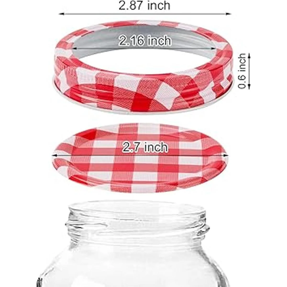 Tamaño: el diámetro interior del anillo es de 2.2 in, el diámetro exterior del anillo es de 2.8 in, y el diámetro de la tapa es de 2.7 in. Asegúrate del tamaño antes de comprar. Adecuado para tarros de boca regular 2.75 pulgadas.