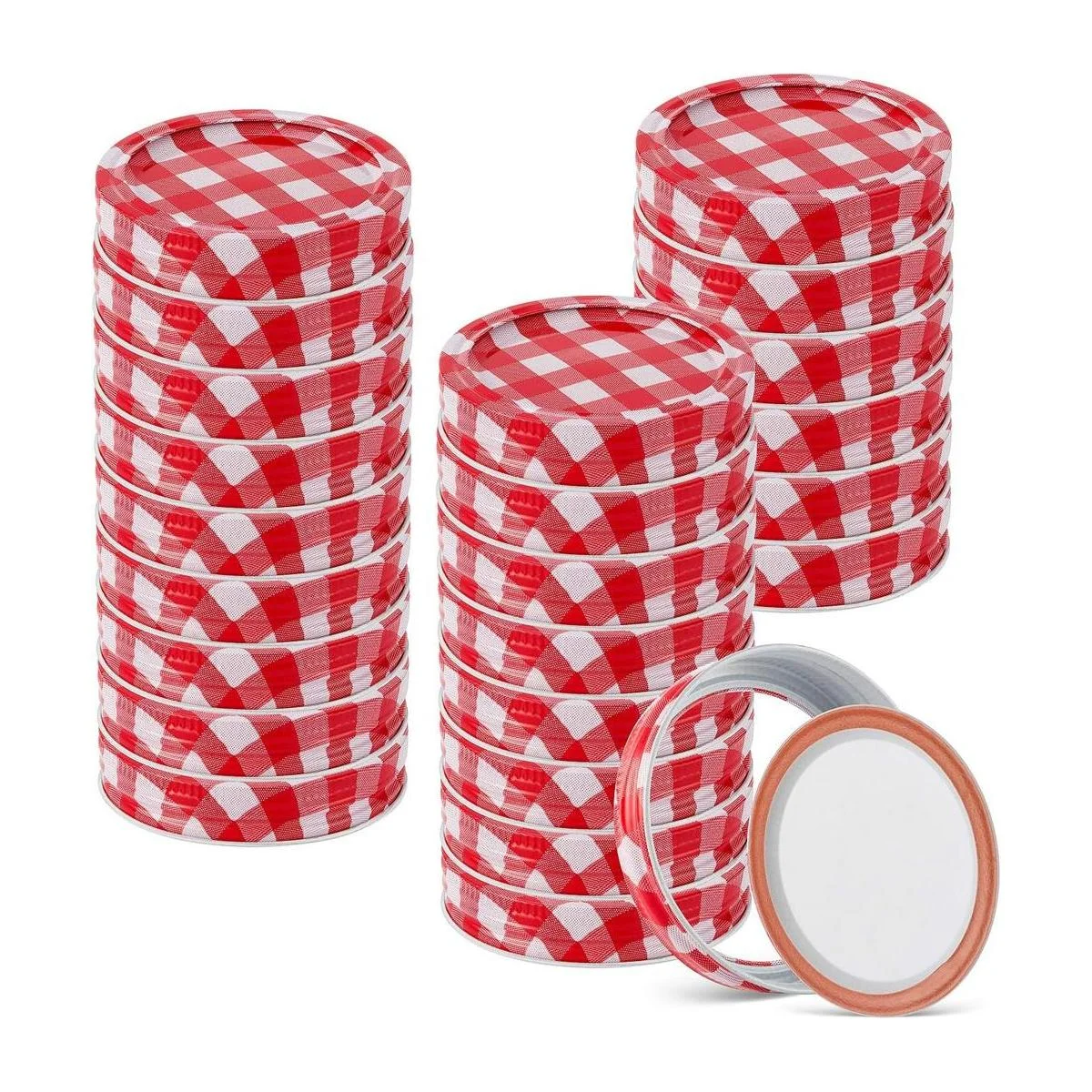 48 unidades24 juegos de tapas de enlatado de boca regular, tipo dividido para tapas de enlatado de tarros Mason rojo y blanco