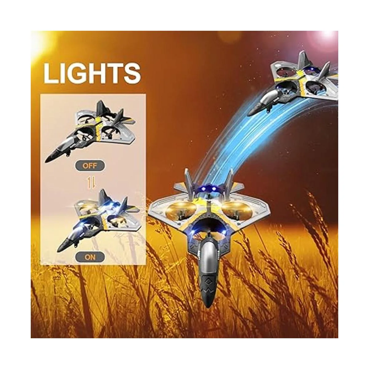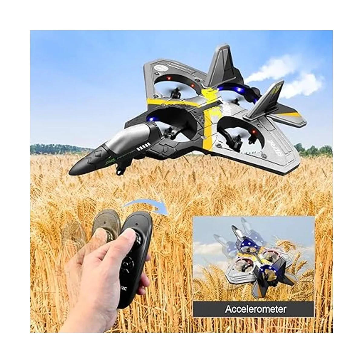 Múltiples acrobacias voladoras: este es un juguete completamente simulado diseñado por luchadores reales, con una variedad de acrobacias de vuelo, detección de gravedad, círculos de aire, círculos de 360 grados, despegue rápido, etc. Esfuérzate por replicar completamente el verdadero sentido de funcionamiento de vuelo de chorro de combate, cumpliendo todo el sueño del niño de conducir un avión de combate a control remoto.