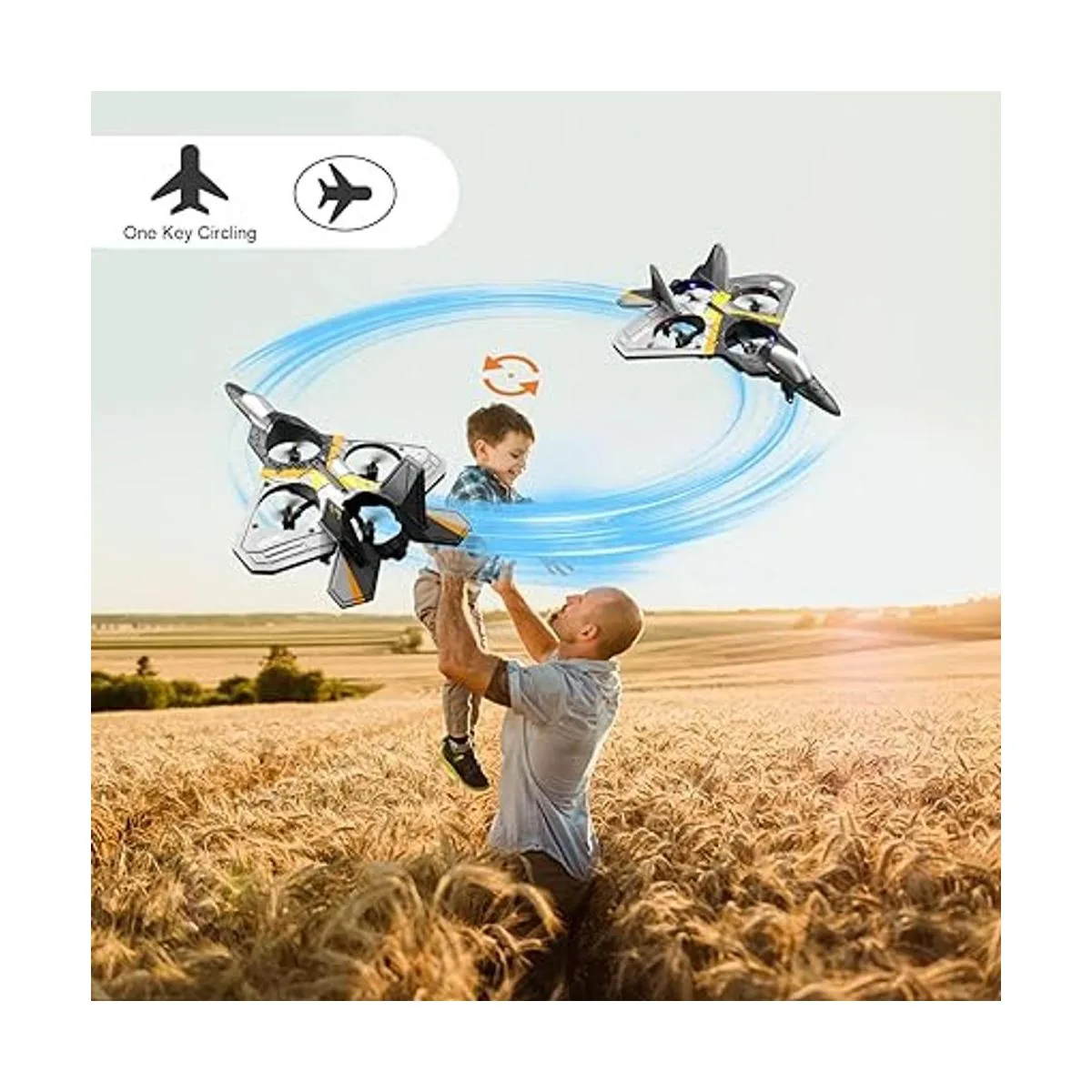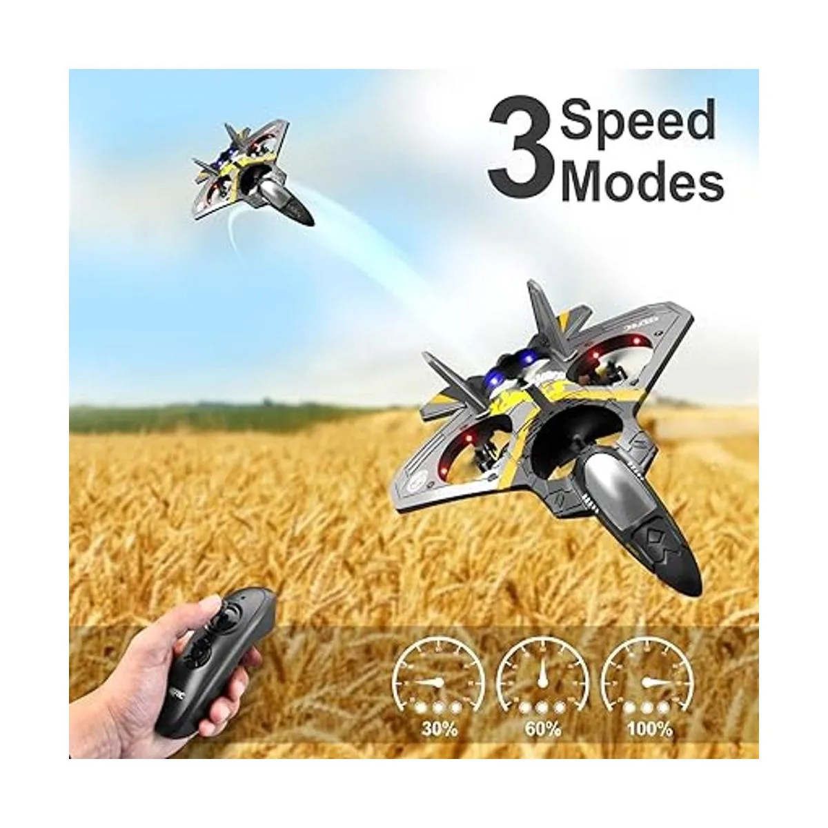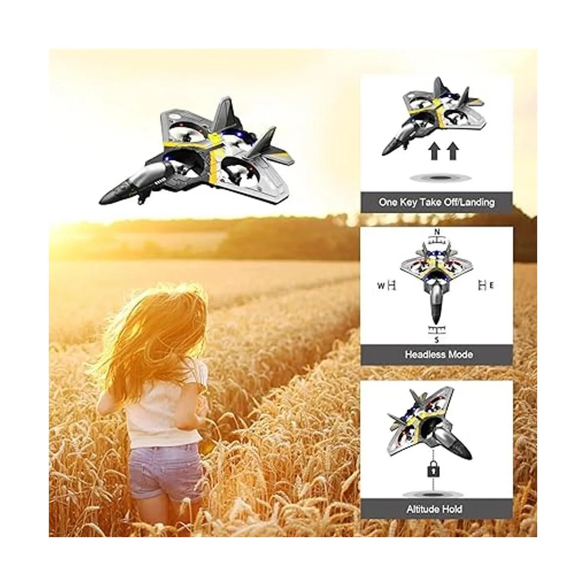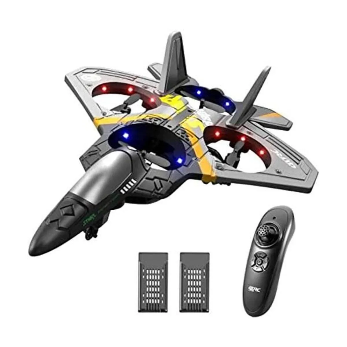 Excelente diseño: avión 4DV17, no requiere montaje y llegar a volar cuando abras la caja. Pulsa un botón en el control remoto, el dron Fighter Jet girará 360 grados al volar. Adopta un vuelo giroscopio de 6 ejes para una experiencia de vuelo muy estable, un despegue y aterrizaje. Es fácil volar para niños, principiantes y adultos, ayuda a los principiantes a aprender a volar paso a paso.