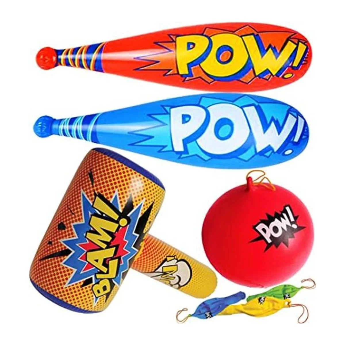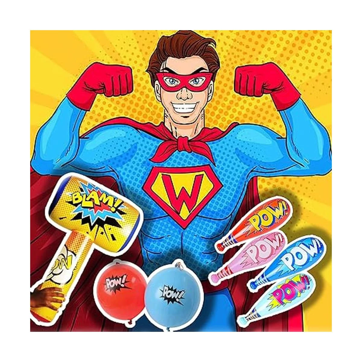 4Es Novelty Juego de 25 bates de béisbol inflables Pow 12 con globos de superhéroe 12 y enorme inflado de 30 pulgadas 1 recuerdos de fiesta de cumpleaños de superhéroe para niños, suministros de fiesta