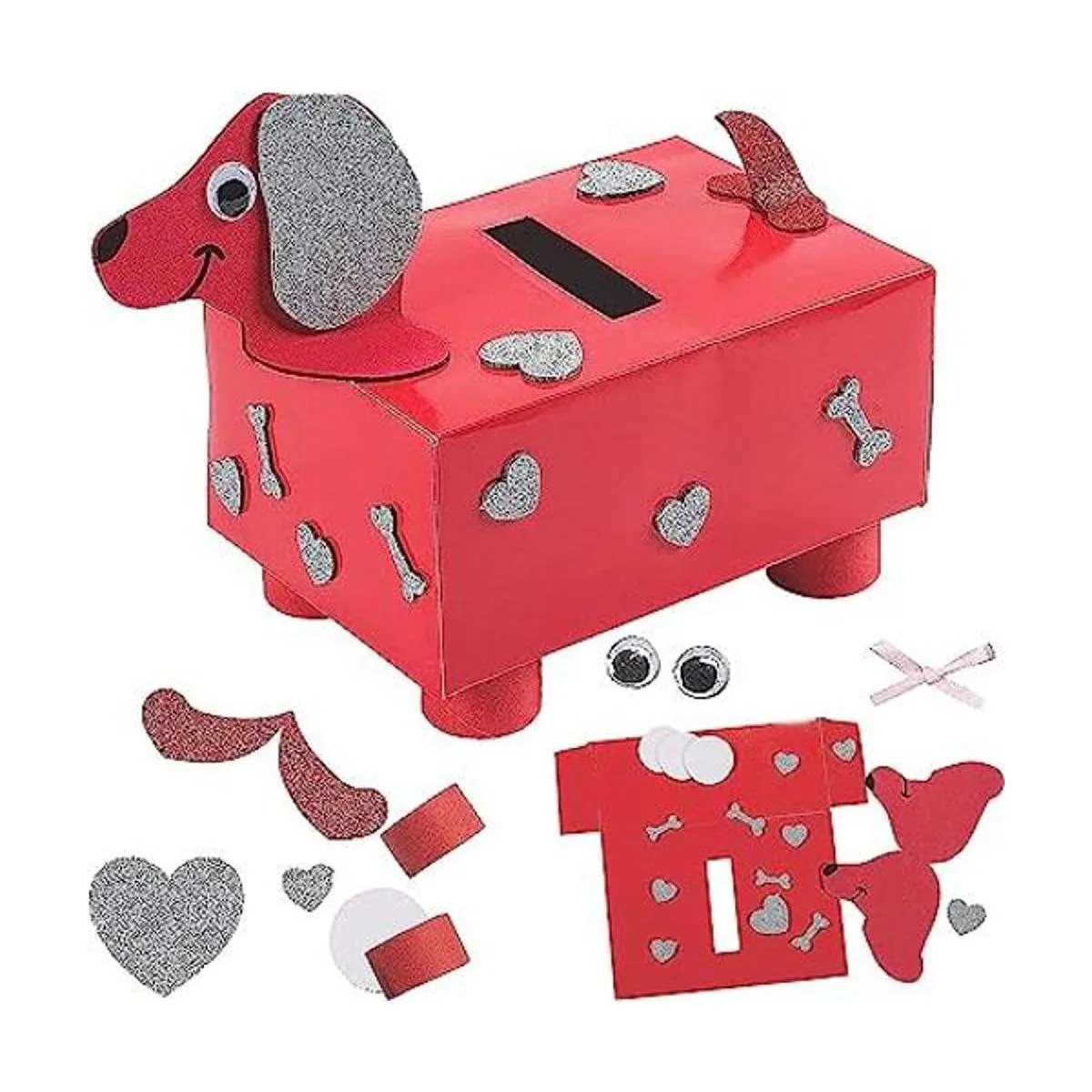Ideal como manualidades del día de San Valentín para niños y niñas, buzón casero de San Valentín en forma de perro