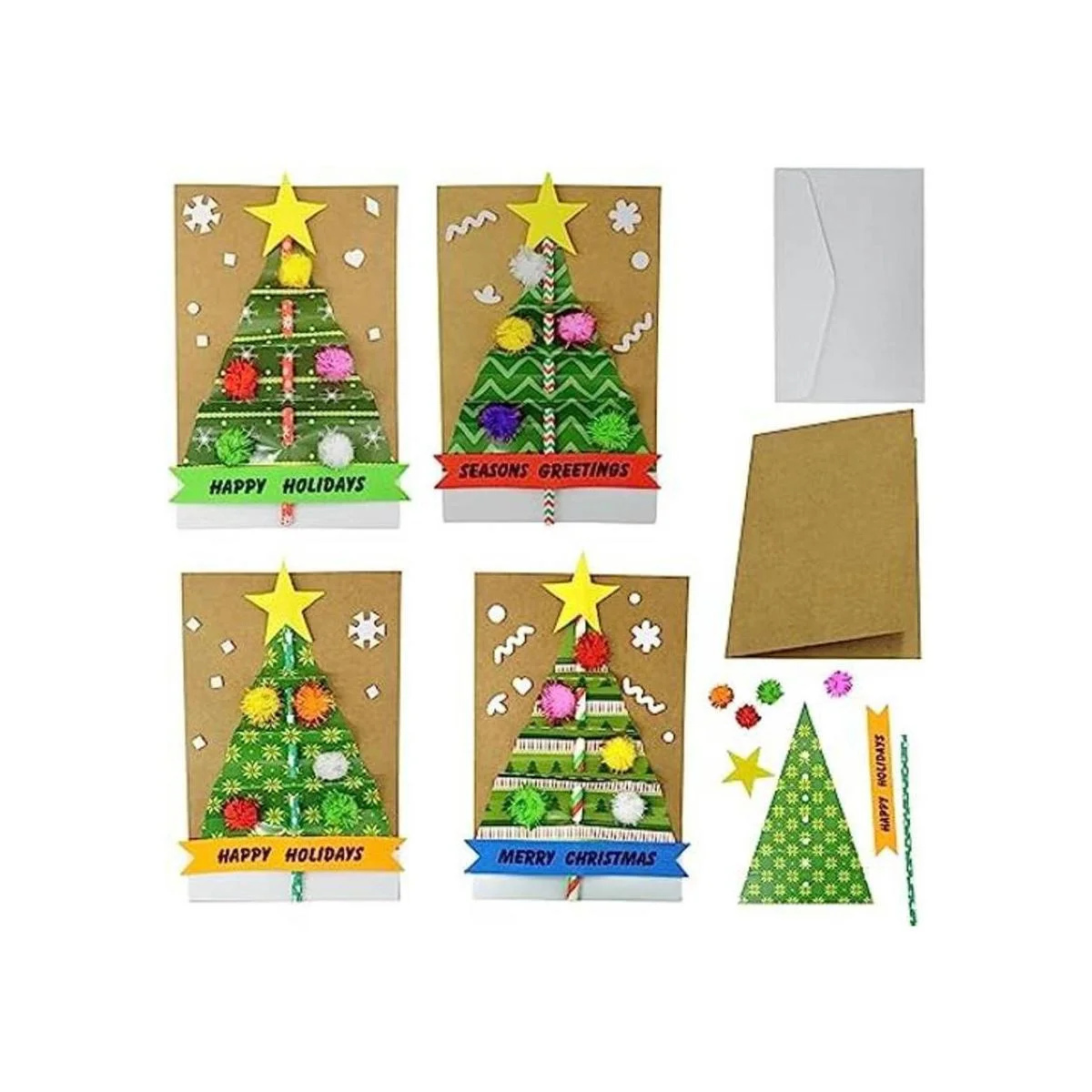 4Es Novelty Kit de manualidades para hacer tarjetas de Navidad para niños paquete de 12 tarjetas de felicitación hechas a mano con sobres y suministros para adultos y niños, tarjeta de invitación para fiestas de Navidad