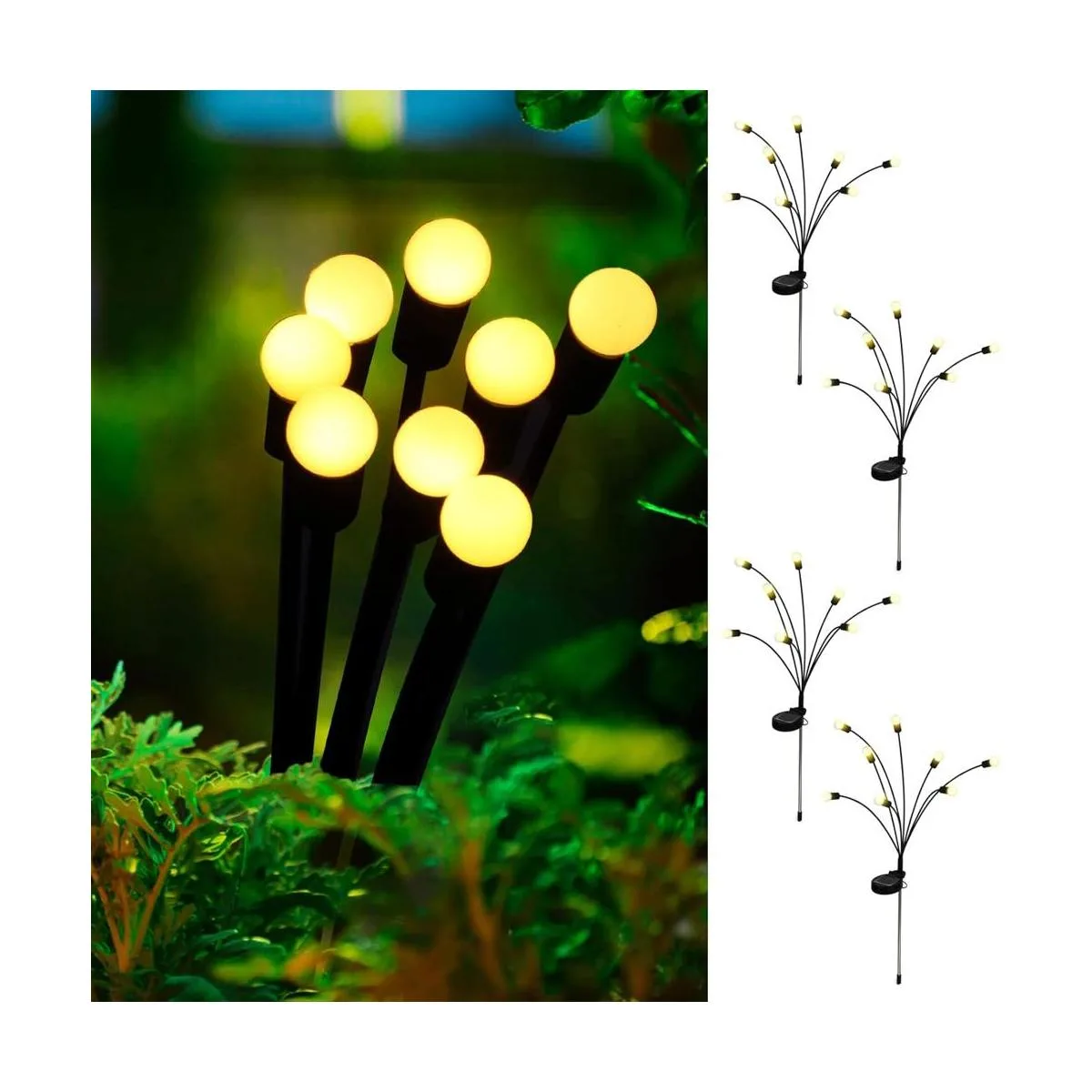 4Pack Solar Powered Firefly Lights Outdoor Waterproof, Swaying as Wind Blows, 8 LED Bulbs, Solar Garden Lights, Warm White, Solar Decorative Outdoor Lights for Pathway Yard Patio Decorations