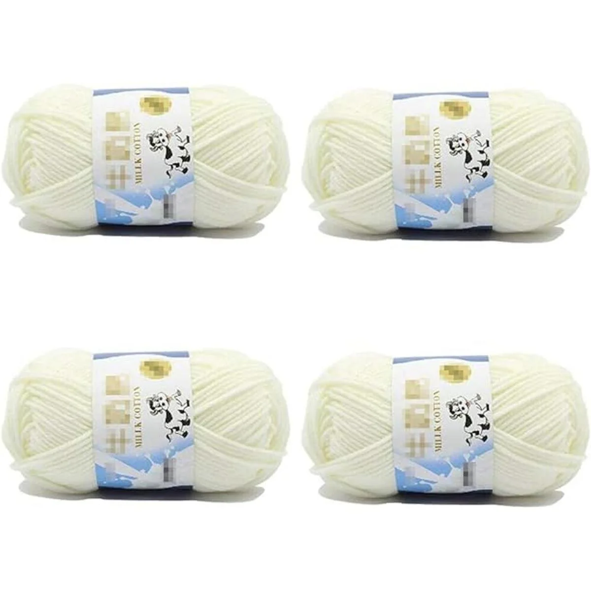 4Rolls suave mezcla de algodón suave y cómodo hilo de leche tela lana ganchillo tejer suministros para bricolaje artesanías spinning materiales blanco