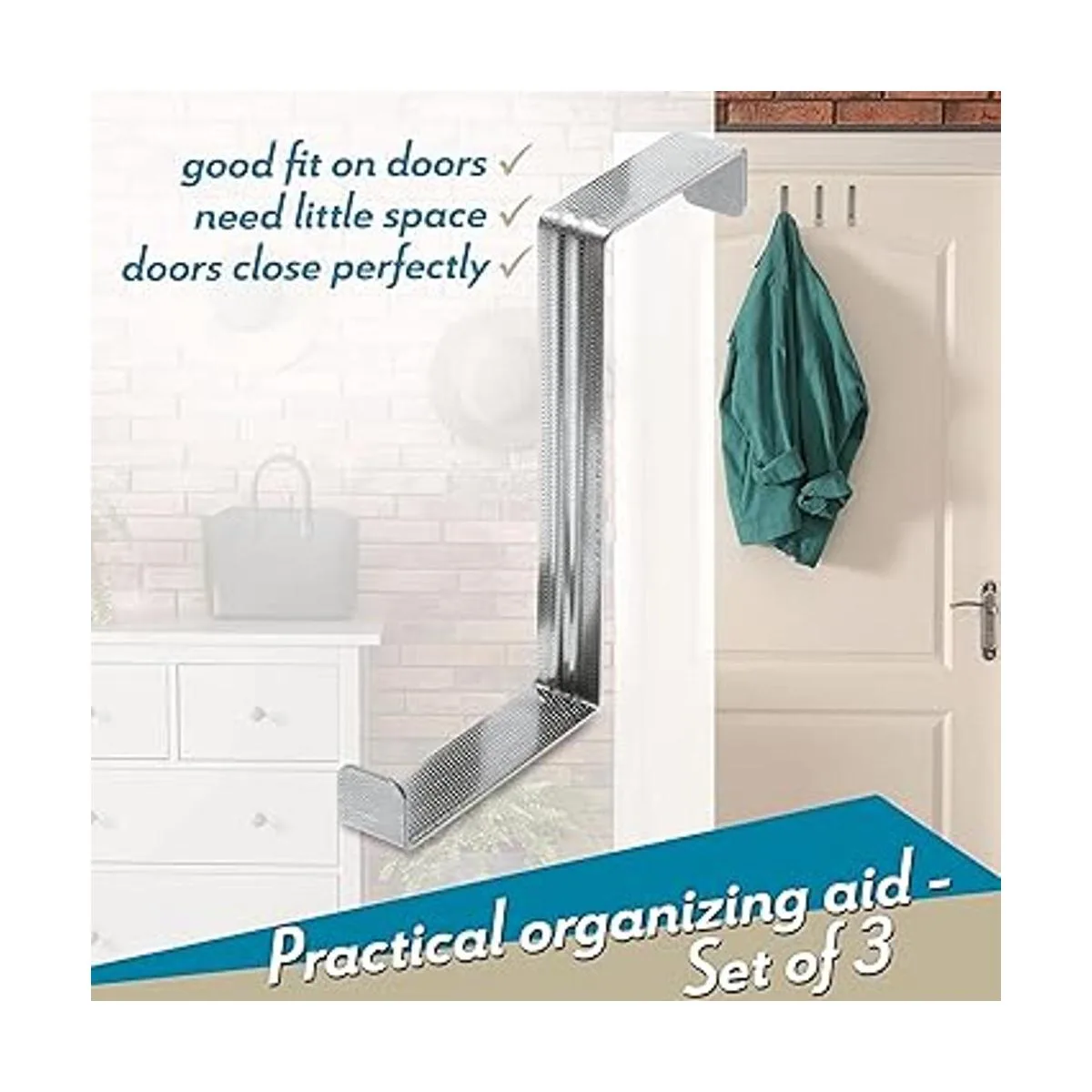 4smile Ganchos para colgar sobre la puerta, paquete de 3 2 unidades, colgador de puerta de acero inoxidable con espuma almohadillas adhesivas, ganchos de metal en forma de Z para colgar en diferentes anchos de puerta, sin óxido