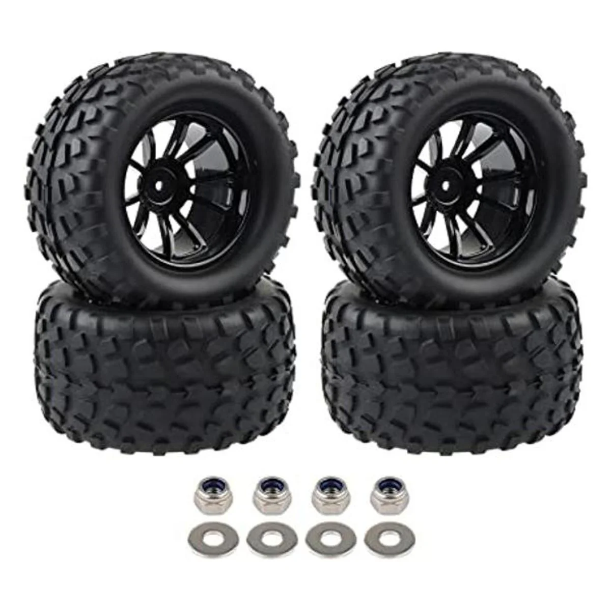 4X RC 110 escala Monster Truck neumáticos grava pisada w5 radios llanta negro RC piezas para Traxxas Arrma Redcat HSP HPI etc
