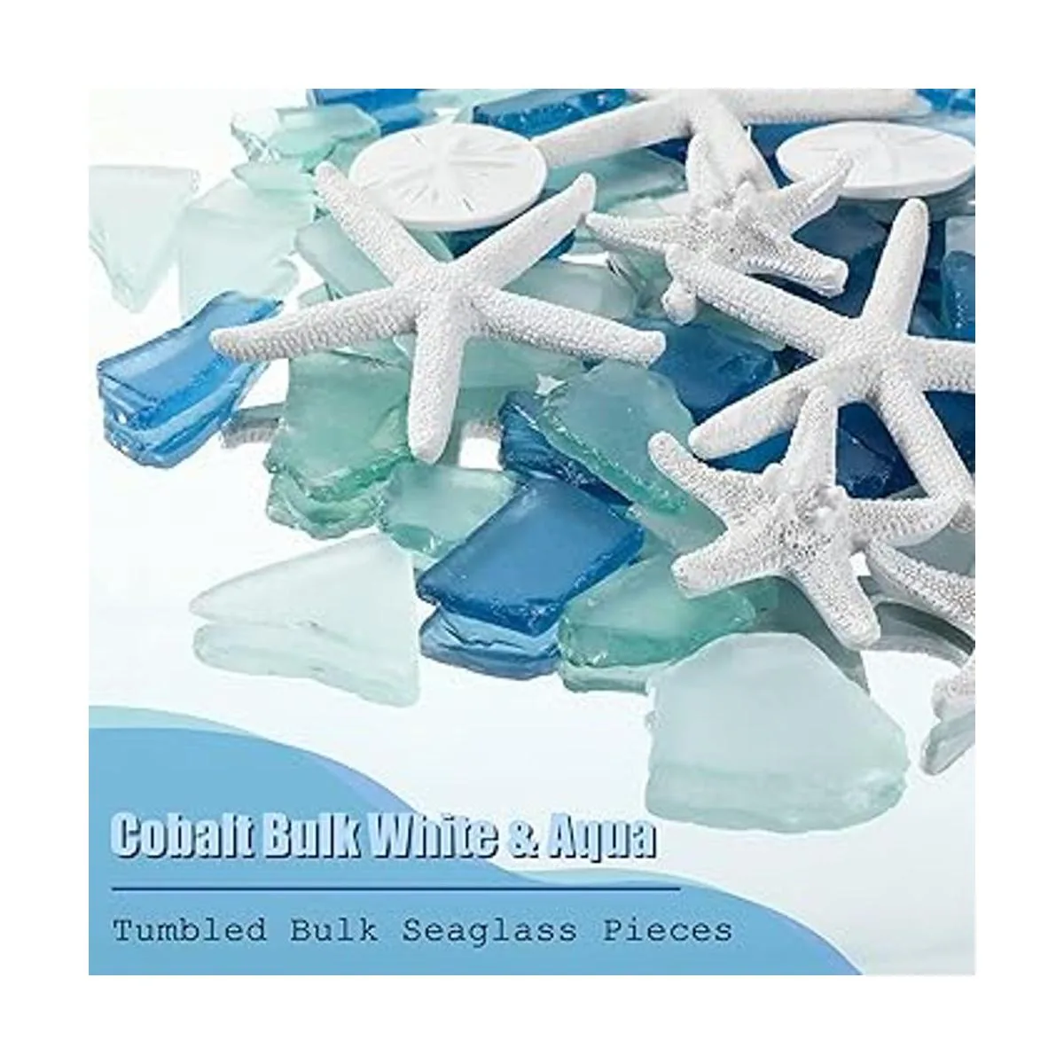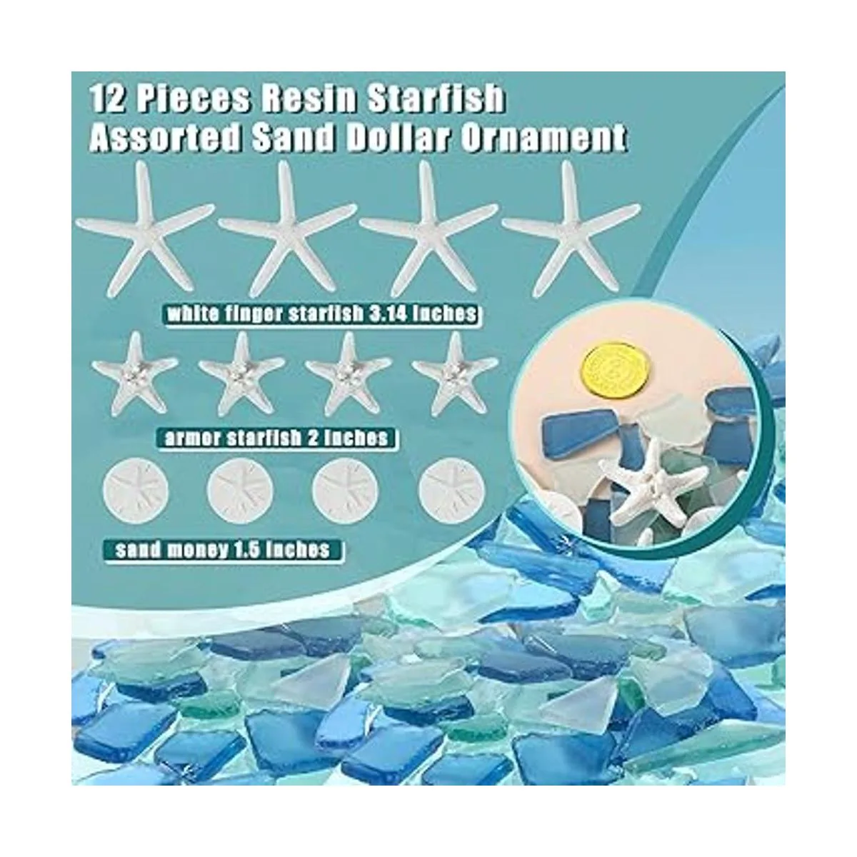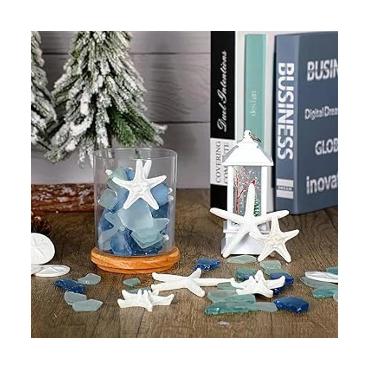 5.3 oz de vidrio de mar cobalto a granel piezas de Seaglass y 12 piezas de estrella de mar surtido de estrellas de mar para manualidades de arena Dólar ornamento de resina blanca lápiz dedo estrella de mar decoración de pared playa estrella de mar decoración decoración