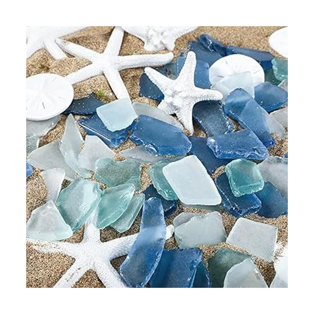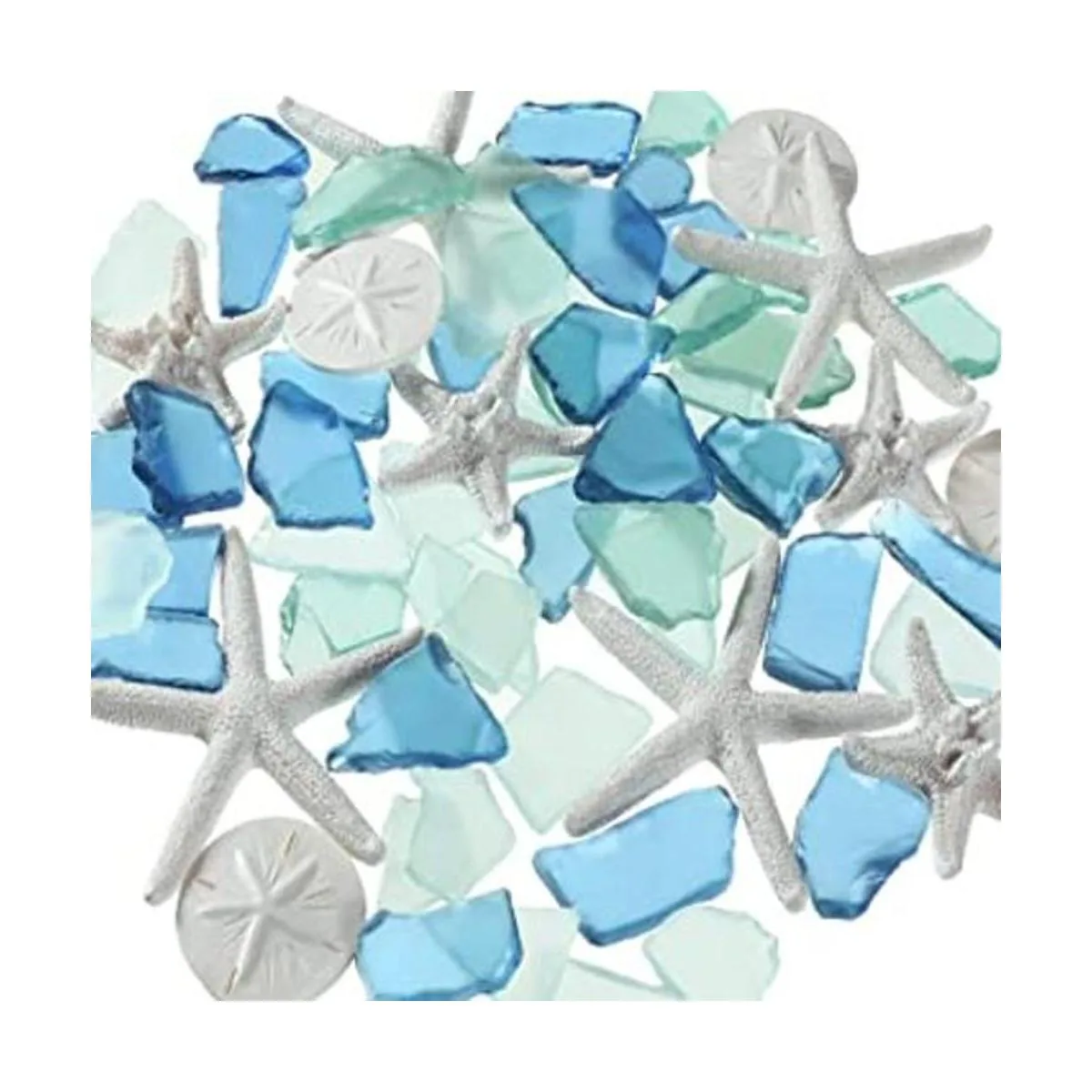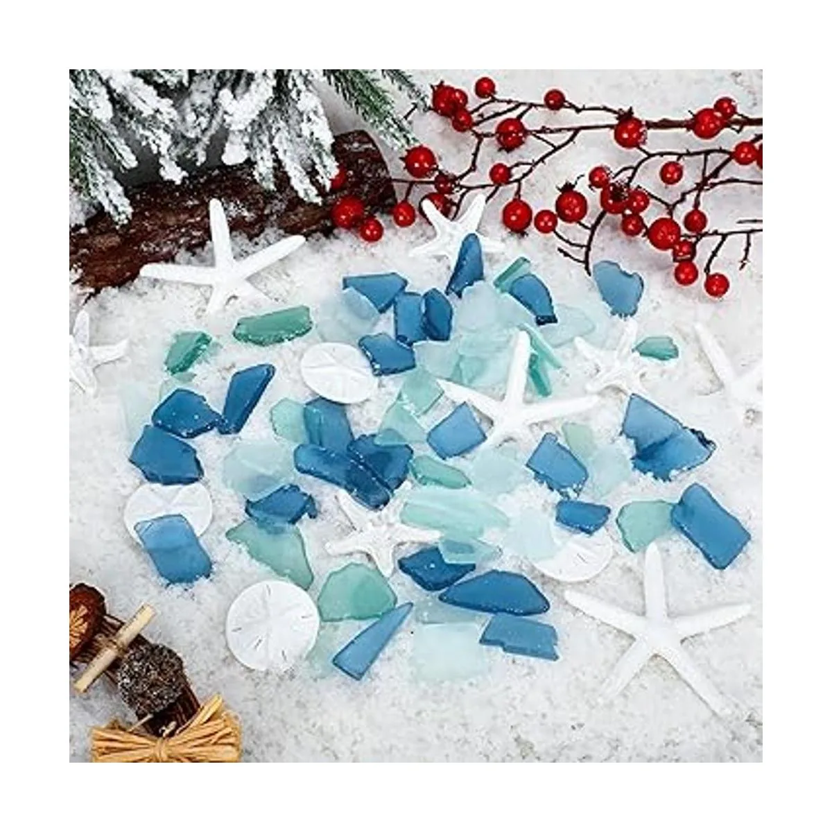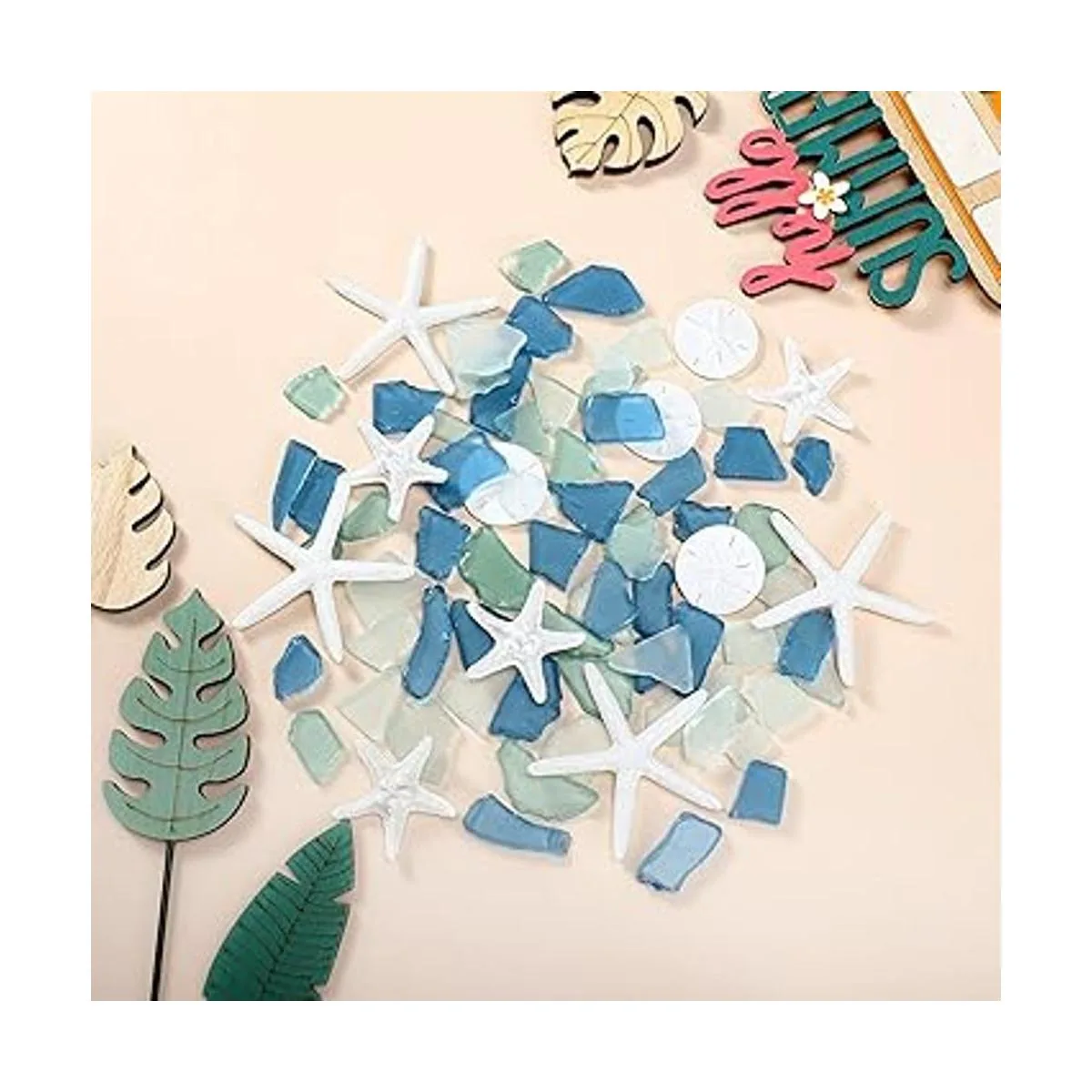5.3 oz de vidrio de mar cobalto a granel piezas de Seaglass y 12 piezas de estrella de mar surtido de estrellas de mar para manualidades de arena Dólar ornamento de resina blanca lápiz dedo estrella de mar decoración de pared playa estrella de mar decoración decoración