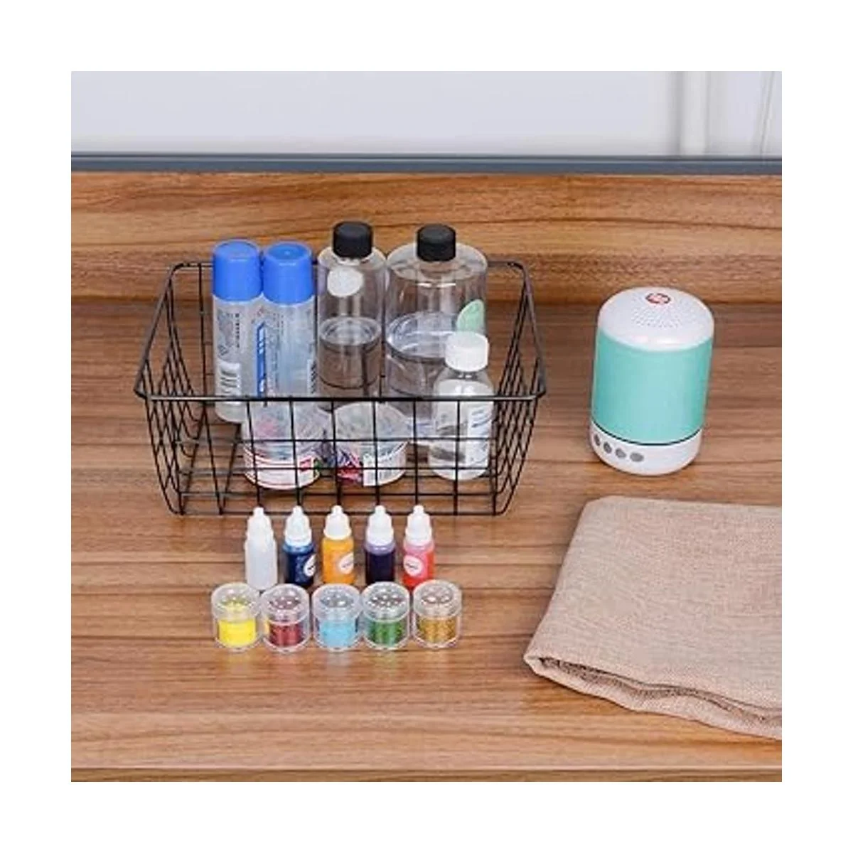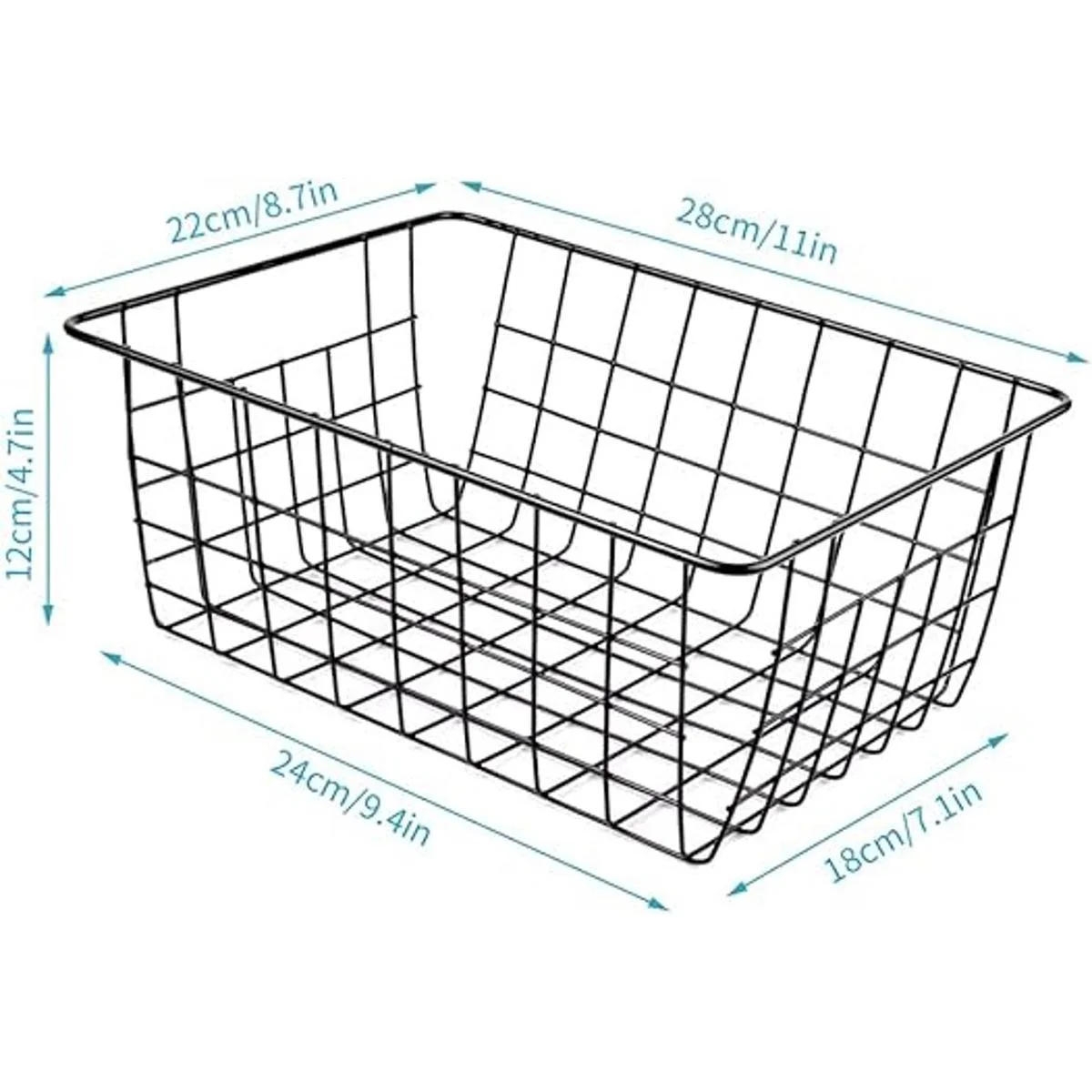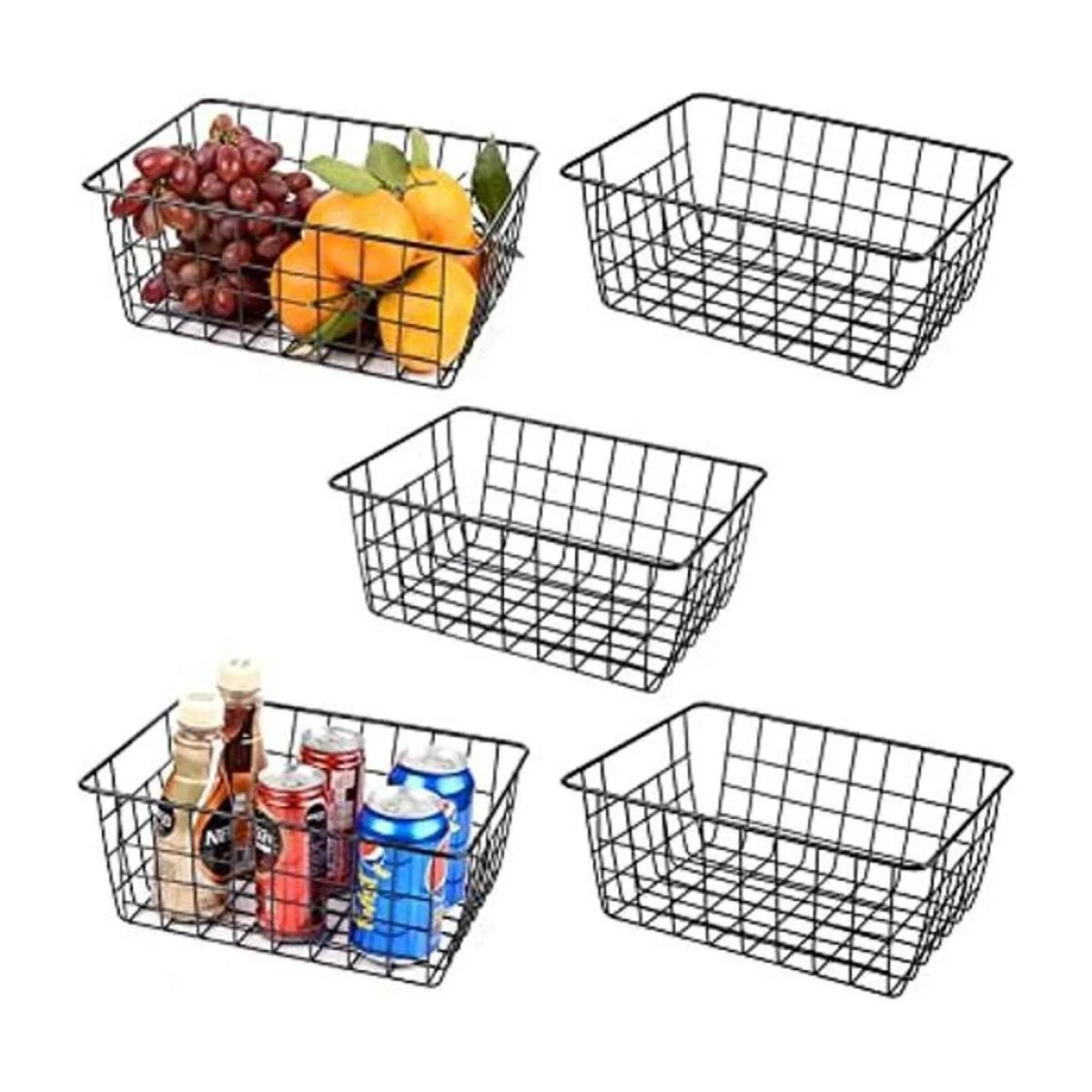 5 cestas de almacenamiento de alambre, cesta organizadora de almacenamiento de metal de alta calidad, cestas de metal de tamaño pequeño para oficina en casa, cocina, color negro