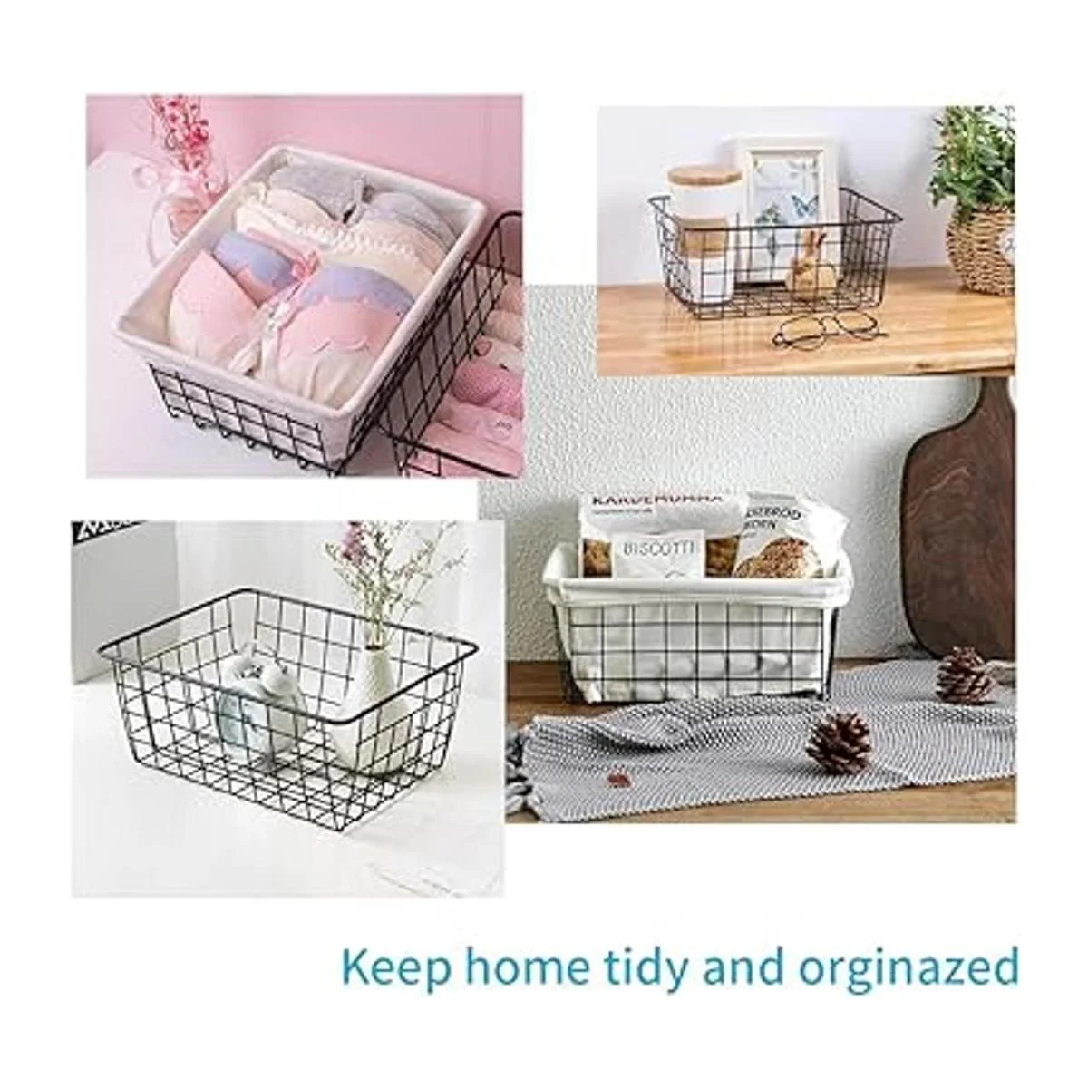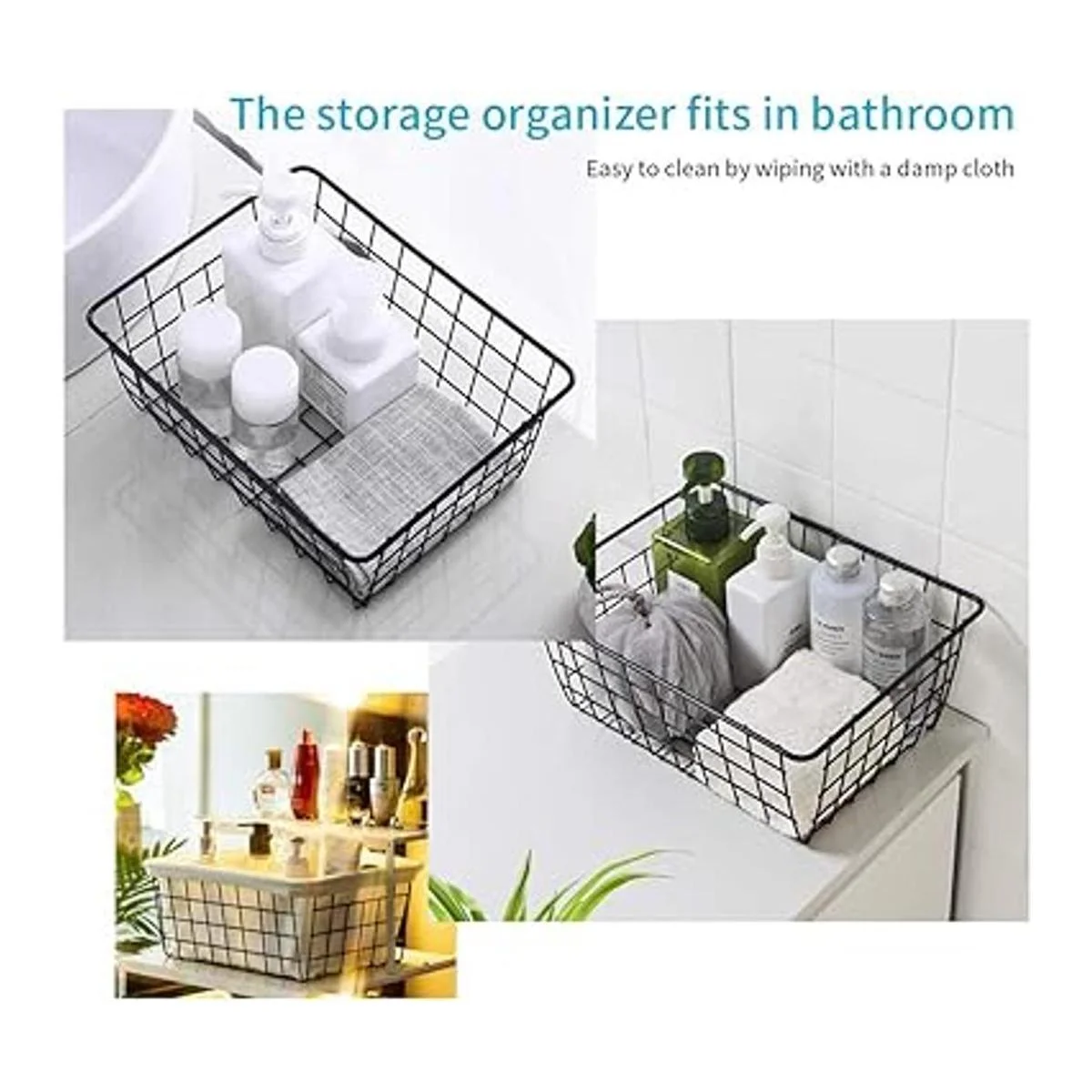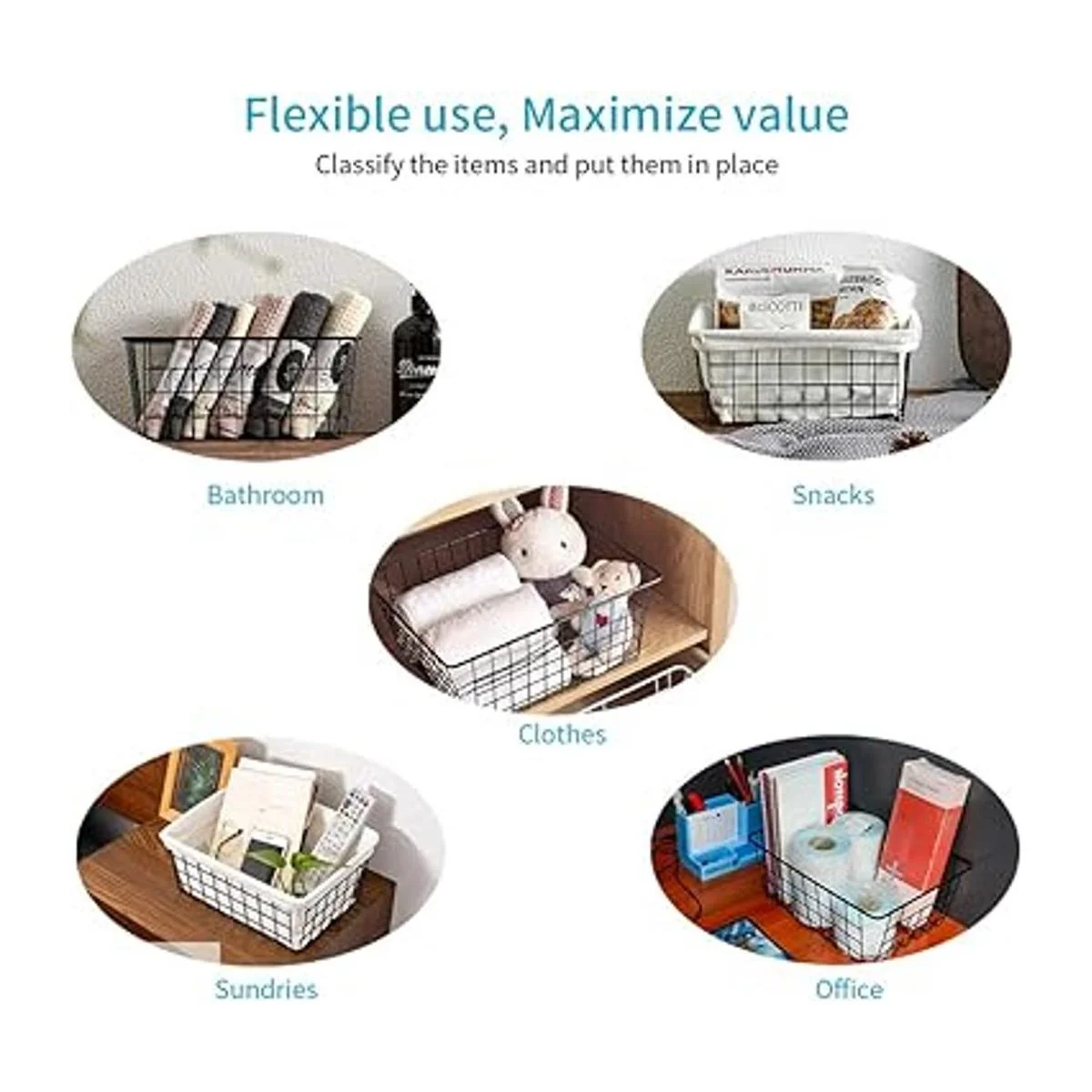 Amplias aplicaciones: nuestra cesta de alambre es muy versátil, fácil de almacenar tus alimentos, almacenar y organizar alimentos, como tanque de condimentos, frutas, aperitivos, libros, ropa, documentos, la cesta es la solución perfecta para el almacenamiento de artículos.