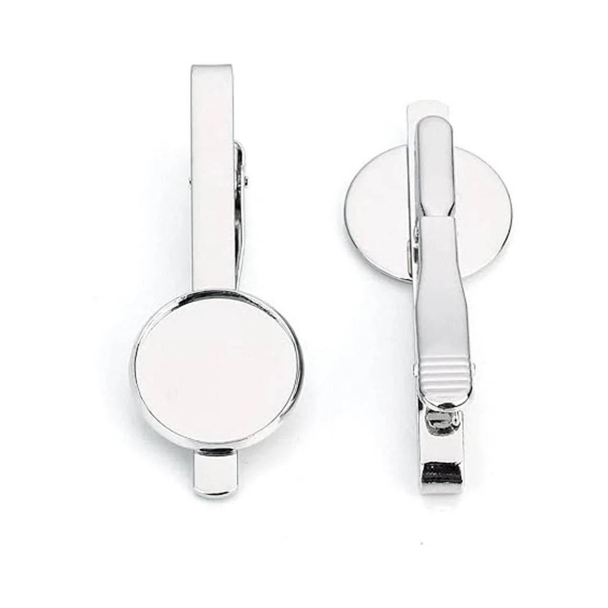 5 clips clásicos para barra de corbata, clip de metal con cabujón en blanco, bandeja para hacer joyas plata 0.787 in