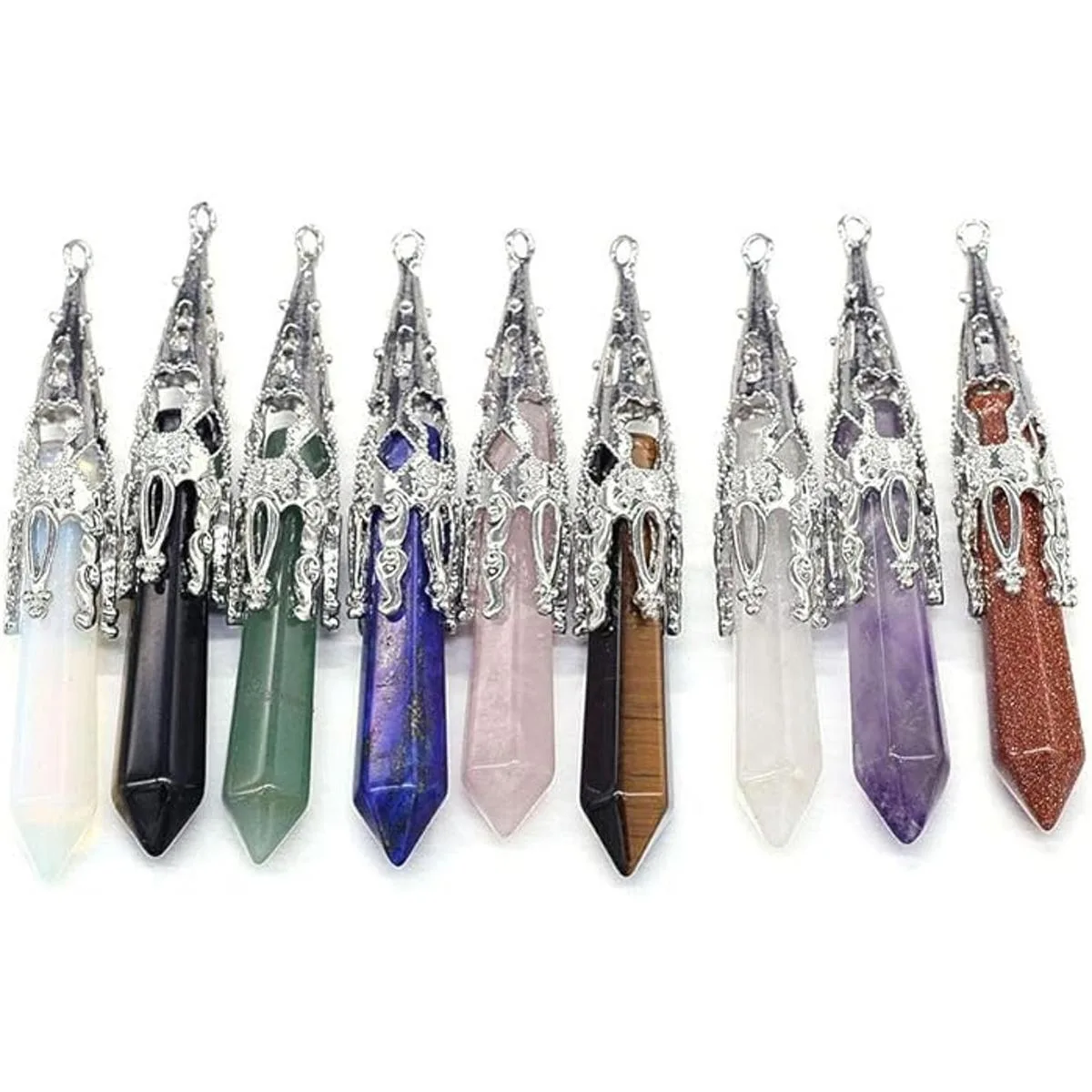 Diferentes colores: ágata negra, piedra de ojo de tigre, amatistas, cuarzo rosa, piedra de arena dorada, puede ofrecerte más tipos de colgantes de gemas