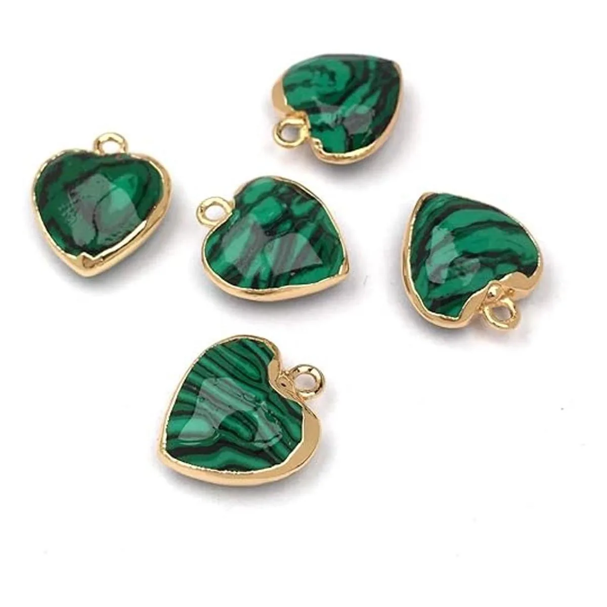 5 colgantes de piedra natural en forma de corazón, cristales curativos, piedras preciosas para hacer joyas, Piedra gata Latón