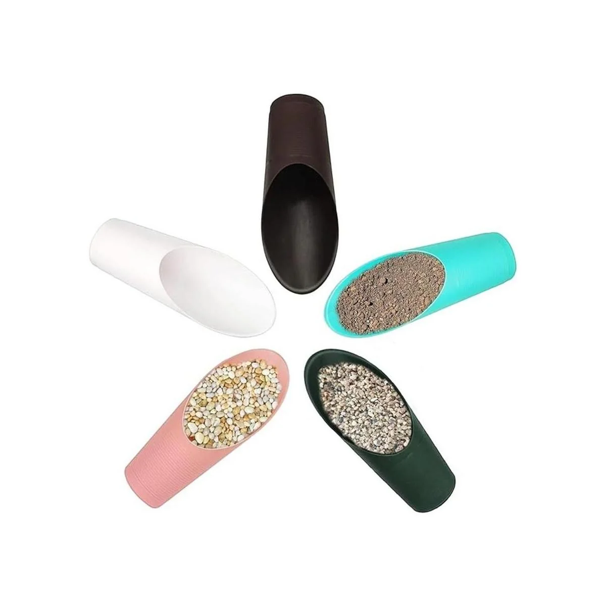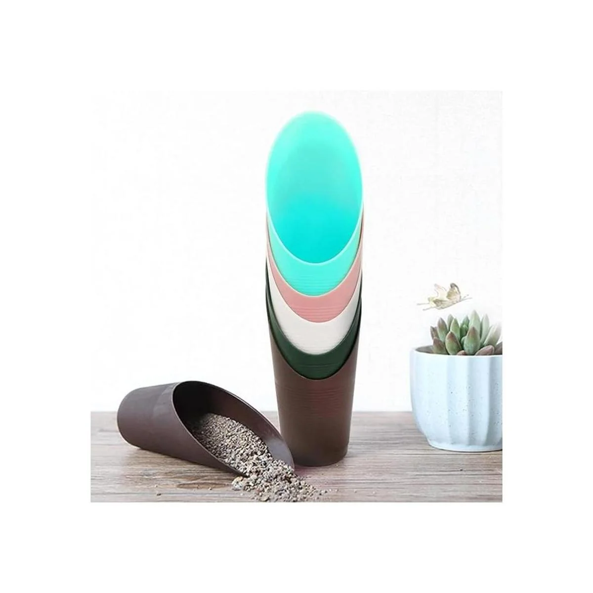 5 cucharadas de suelo Bonsai, cucharadas de plástico para jardín, pequeñas herramientas de jardinería, scooters, pala de cubo. Adecuado para plantación de flores, bonsai, macetas, cultivo, deshierba 5 colores.