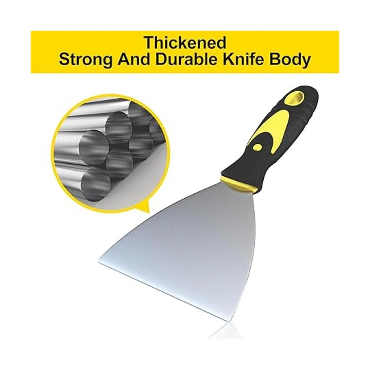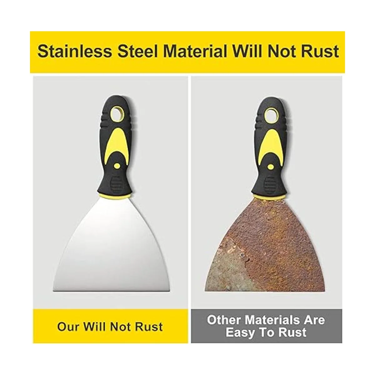 No se corroen: los cuchillos de masilla utilizan material de acero inoxidable de alta calidad, no se oxida, resistente a la corrosión sólida, fácil de limpiar, no hay necesidad de preocuparse por la deformación y la rotura. Es la herramienta raspadora de metal perfecta