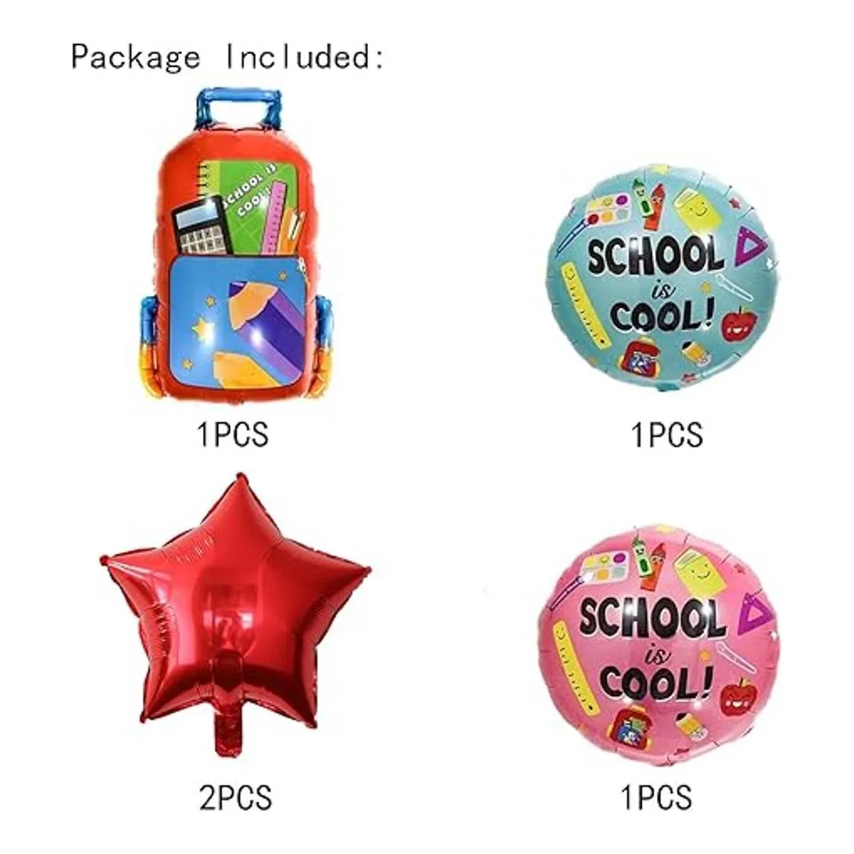 El paquete incluye: 5 globos escolares, 5 unidades en total.