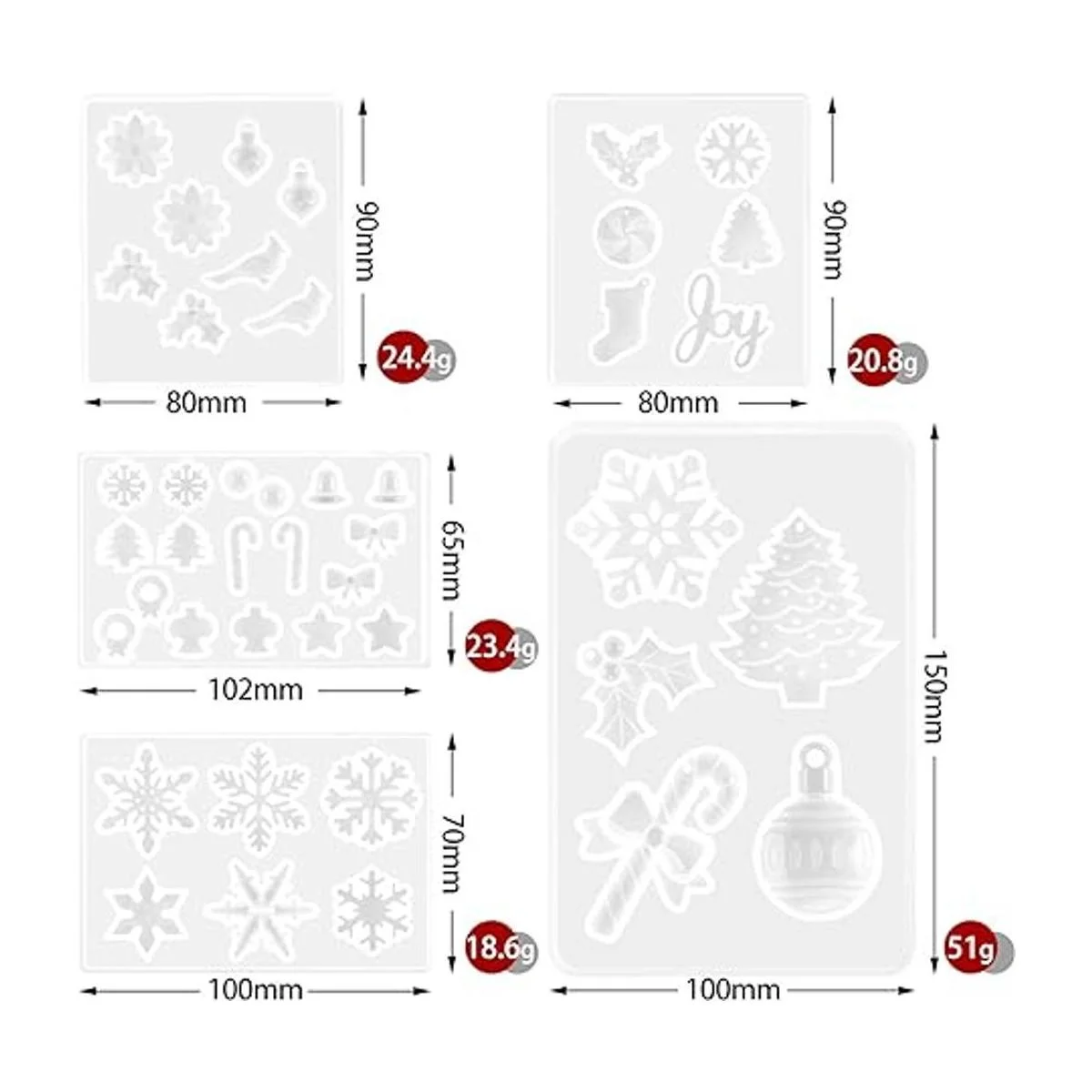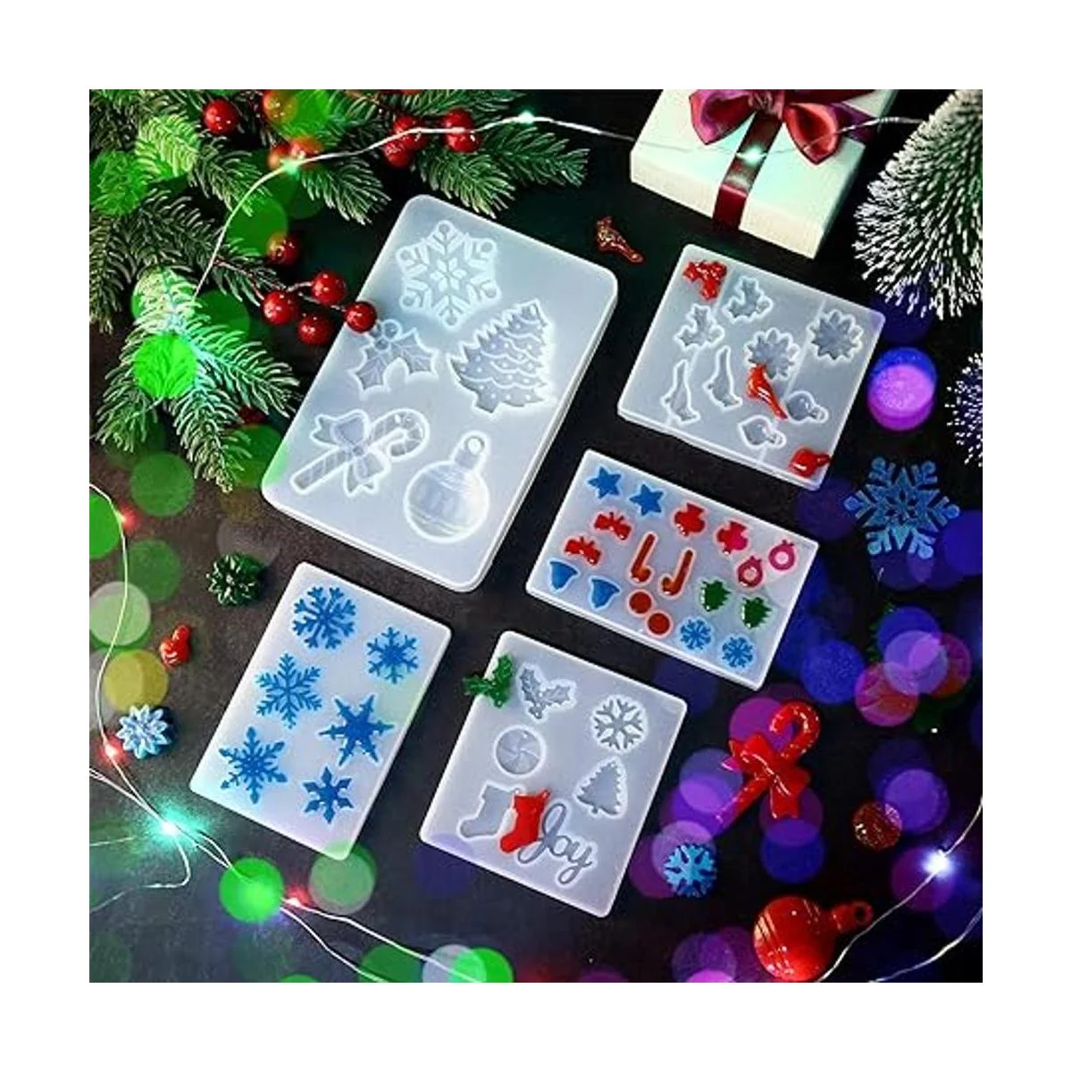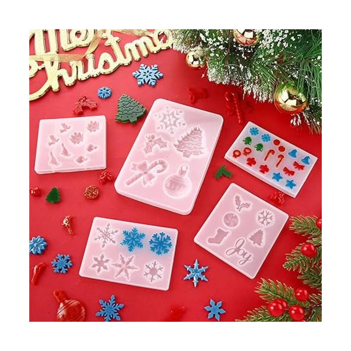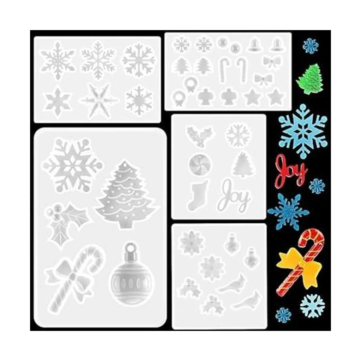 5 moldes de resina de Navidad, molde de Navidad, molde de copo de nieve, moldes de Navidad, moldes de silicona de Navidad para resina para decoración del hogar