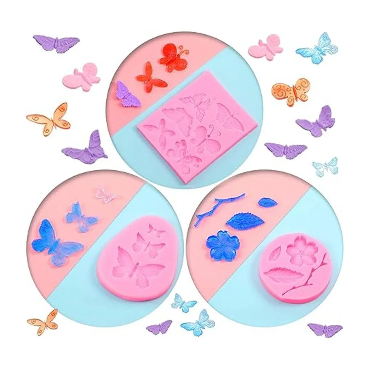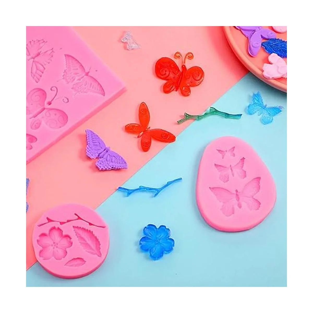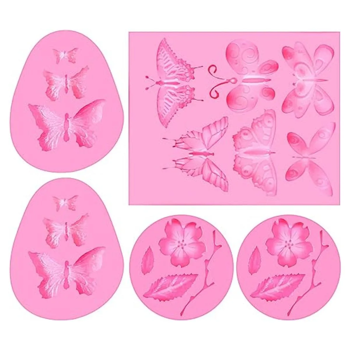 5 moldes de silicona con forma de mariposa y flor para fondant de caramelo, chocolate, decoración de tartas, arcilla polimérica, cera, manualidades de azúcar