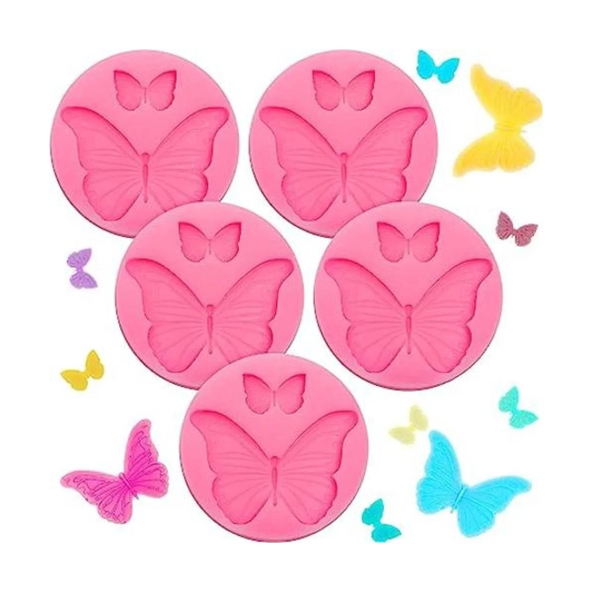 5 moldes de silicona de mariposa, mini mariposa fondant molde para hornear pasteles de silicona mariposa chocolate molde rosa arcilla polimérica moldes pequeños moldes antiadherentes herramienta DIY para decoración de pasteles