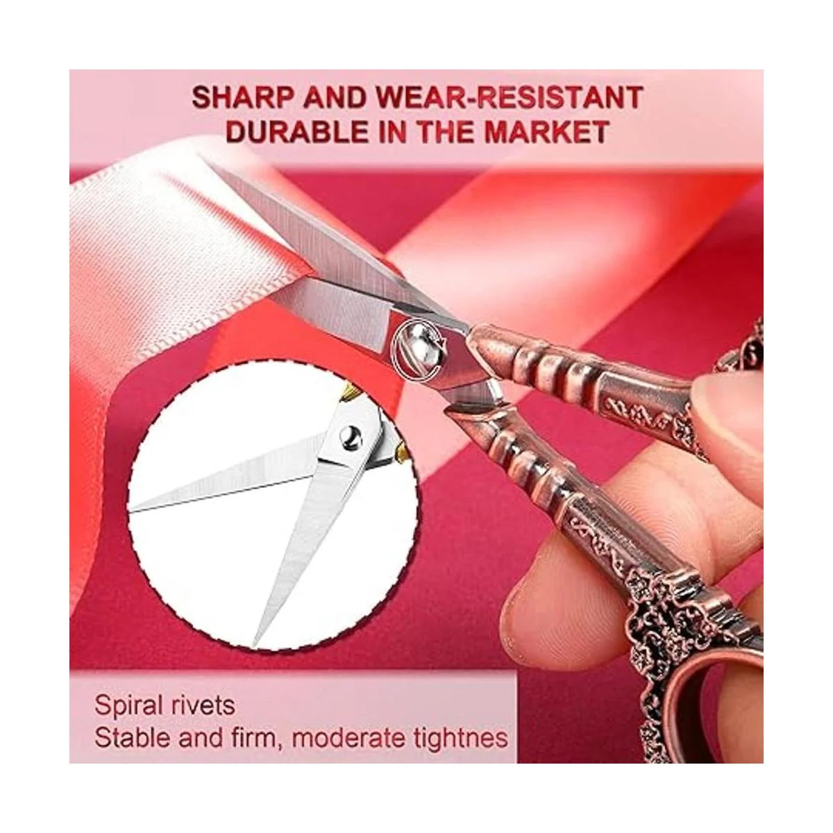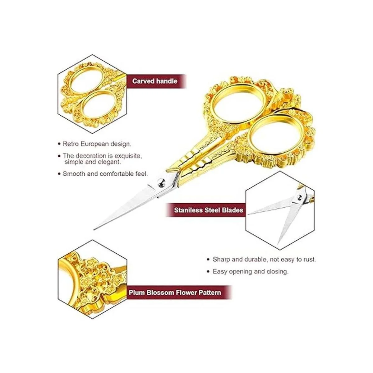 Diseño de borde de flor de ciruelo: los bordes del mango de nuestras tijeras de estilo europeo vintage adoptan un diseño en forma de flor de ciruelo, elegante y exquisito, y aumenta la fricción de sujeción, lo que te ayuda a sujetar las tijeras firmemente al hacer manualidades