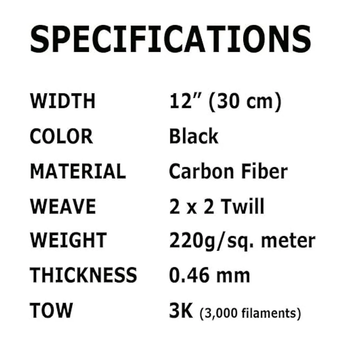 5 pies x 12 pulgadas Tela de fibra de carbono 2 x 2 tejido de sarga 3 K7.76 oz