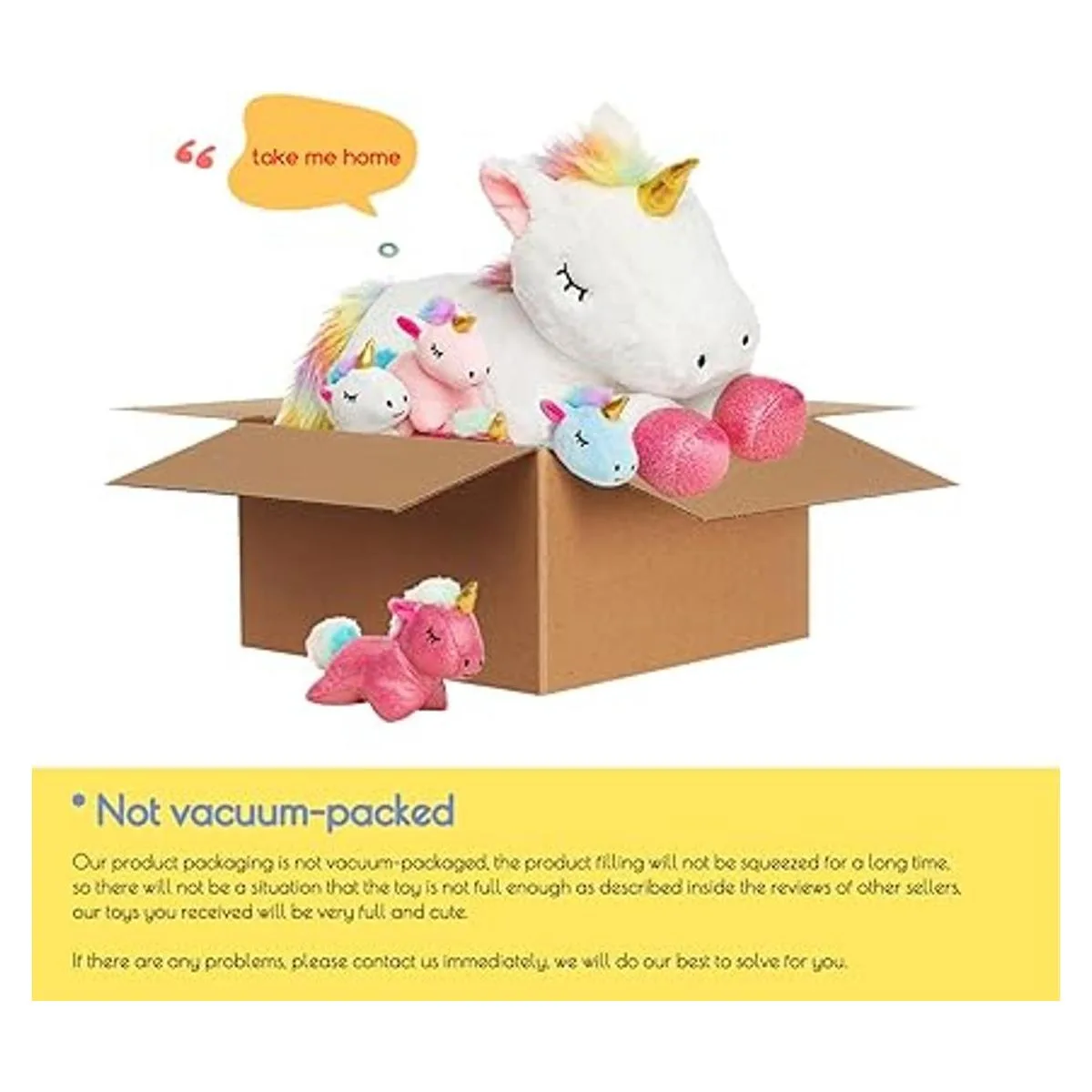 5 piezas de animales de peluche de unicornio para niñas y niños a partir de 3 años, 1 unicornio gigante para mamá con 4 mini unicornios de bebé, lindos juguetes de unicornio de felpa suave, regalo para niños, cumpleaños, Navidad, día de San Valentín