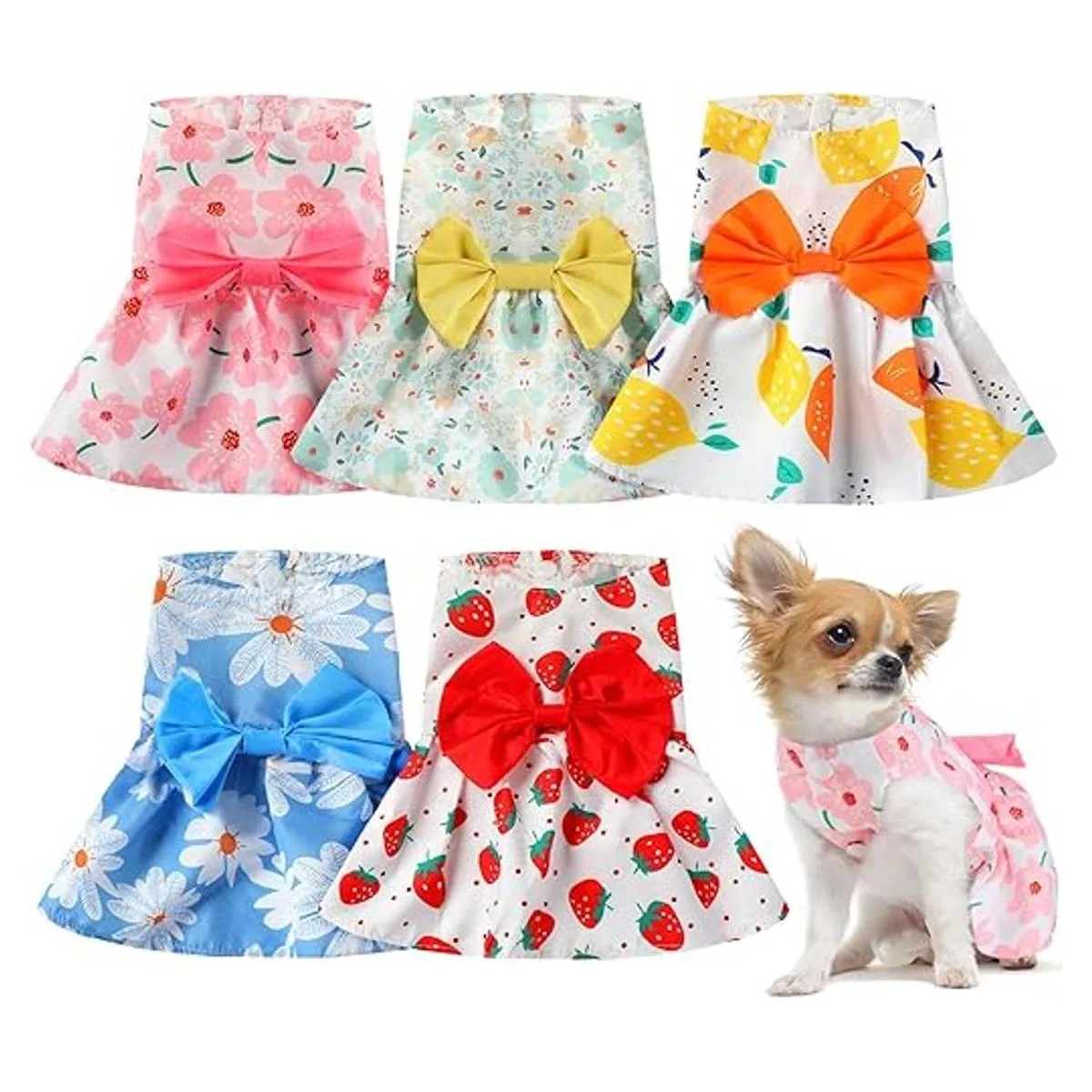 5 piezas de bonito vestido para perro, ropa de verano para cachorros, suave y cómodo, vestidos de PET con nudo de lazo para mascotas pequeñas, 5 estilos