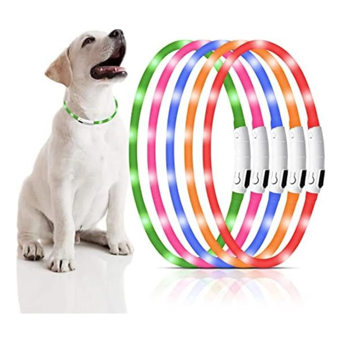 5 piezas LED collar de perro USB recargable luz para perro collar de silicona para mascotas con 3 modos de brillo ajustable para mascotas collar de luz LED para mascotas cortable para perros pequeños medianos grandes por la noche
