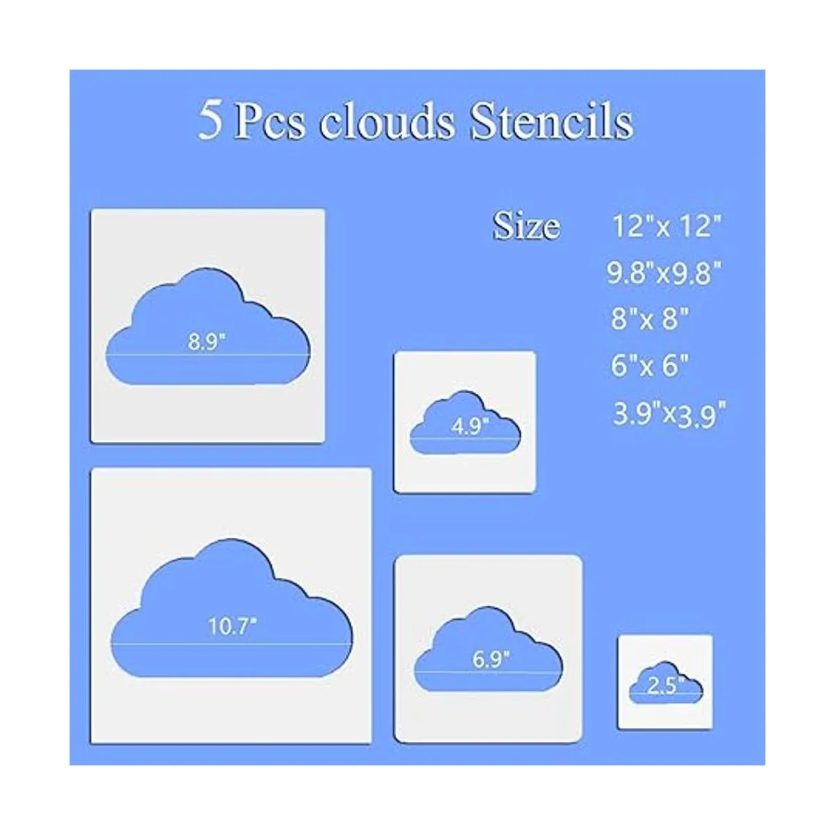 5 plantillas de pintura reutilizables, plantillas de arte de plástico para manualidades en madera, papel de pared para decoración del hogar, bricolaje de 4 a 12 pulgadas nubes