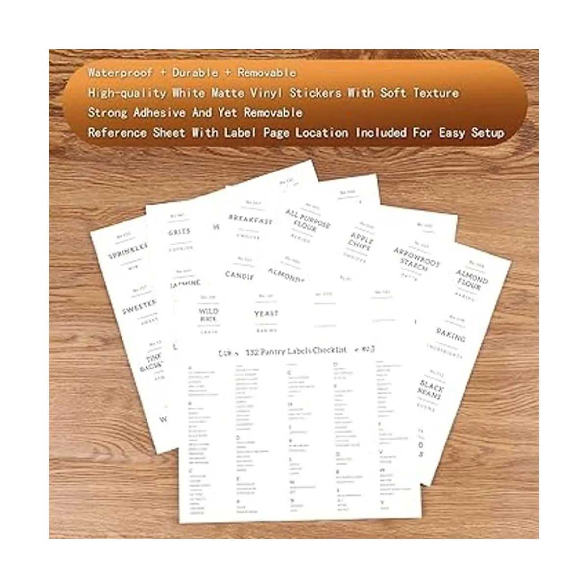 Etiquetas perfectas para despensa: 132 etiquetas de despensa de cocina para recipientes para mantener tu comida fresca y ordenada. Las etiquetas minimalistas son de texto negro en etiquetas blancas para alimentos adecuadas para todos los contenedores de almacenamiento herméticos. Las etiquetas de organización de calcomanías de despensa están preimpresas en calcomanías de vinilo impermeables de alta calidad que no se rompen ni se despegan, pero se pueden quitar fácilmente.