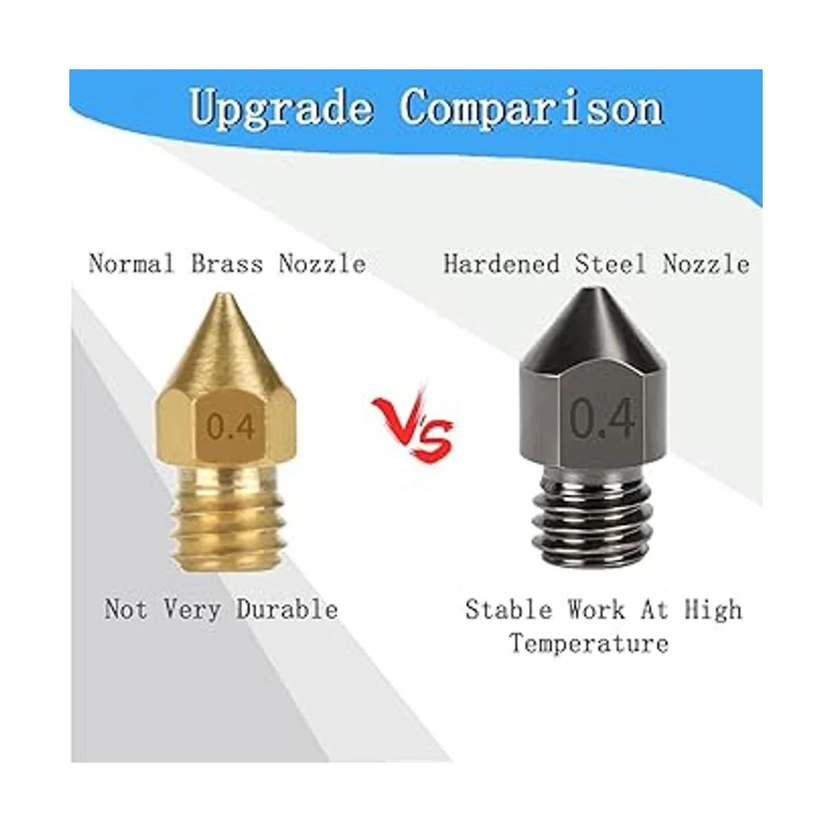 Amplia compatibilidad: se adapta a casi todas las impresoras FDM, se puede instalar en el bloque de calefacción MK8. Estas boquillas son compatibles con MK8 hotend para E3D V5/V6 y Ender 2 3s 3 Pro, también compatible con CR10 allmetal hotend, Prusa i3, Anet A8, Reprap, etc.