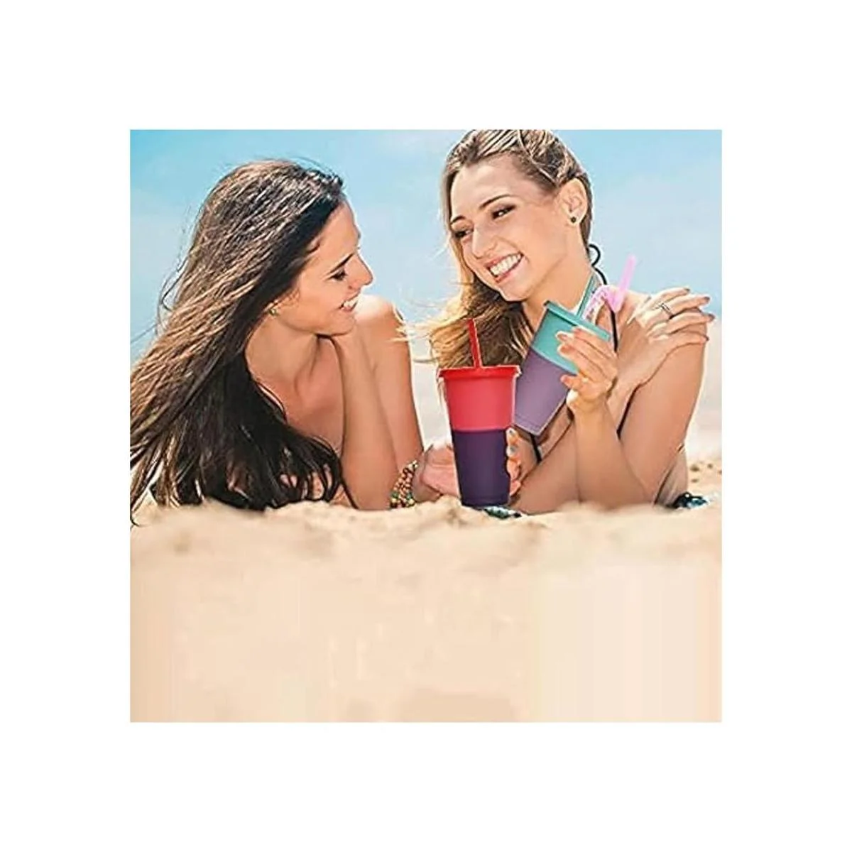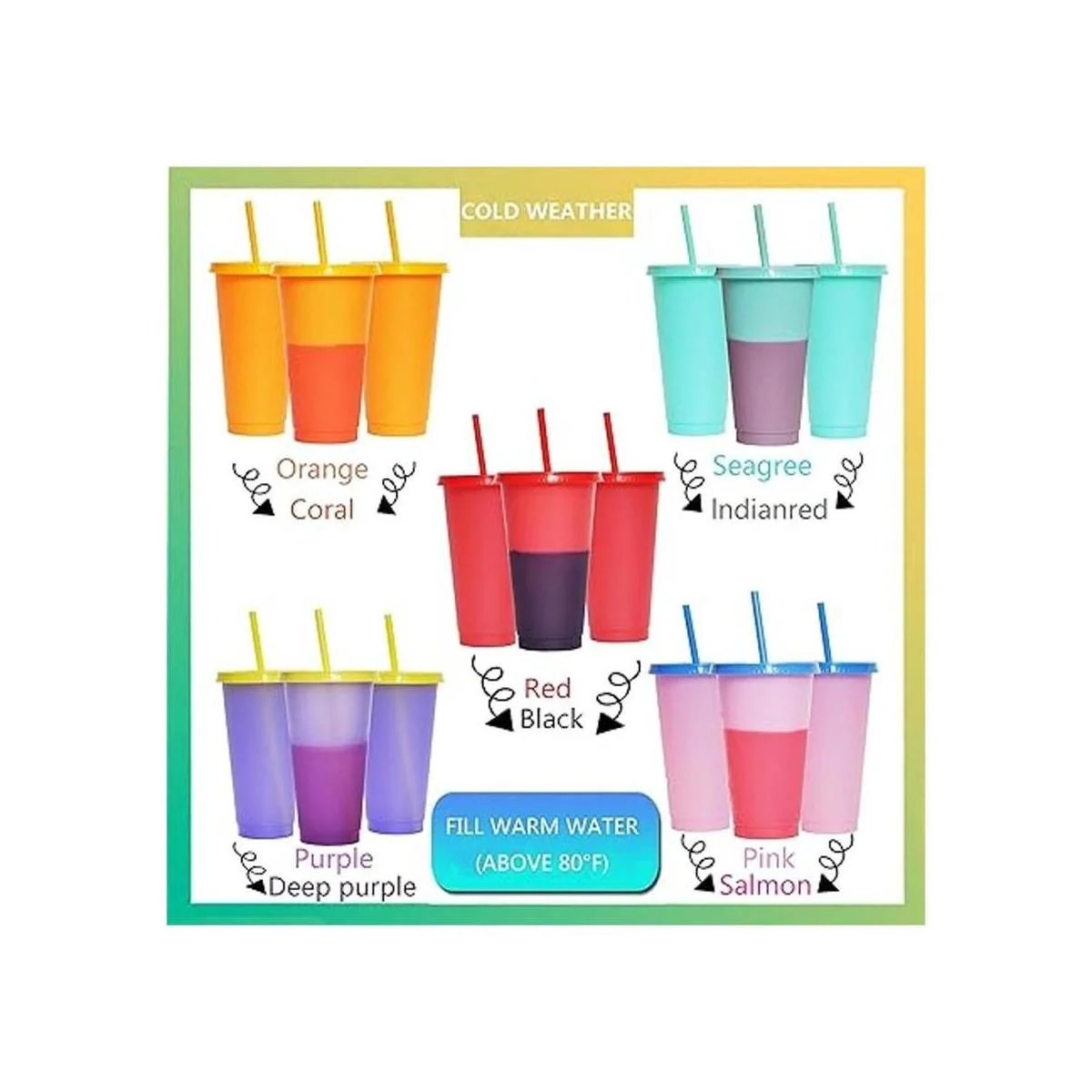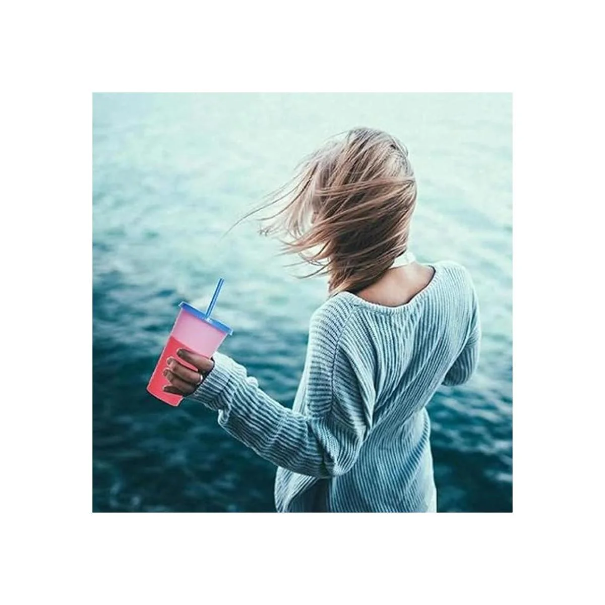 Paquete de 5 vasos reutilizables para agua fría que cambian de color. Taza que cambia de color de 24 onzas con popote y tapa.