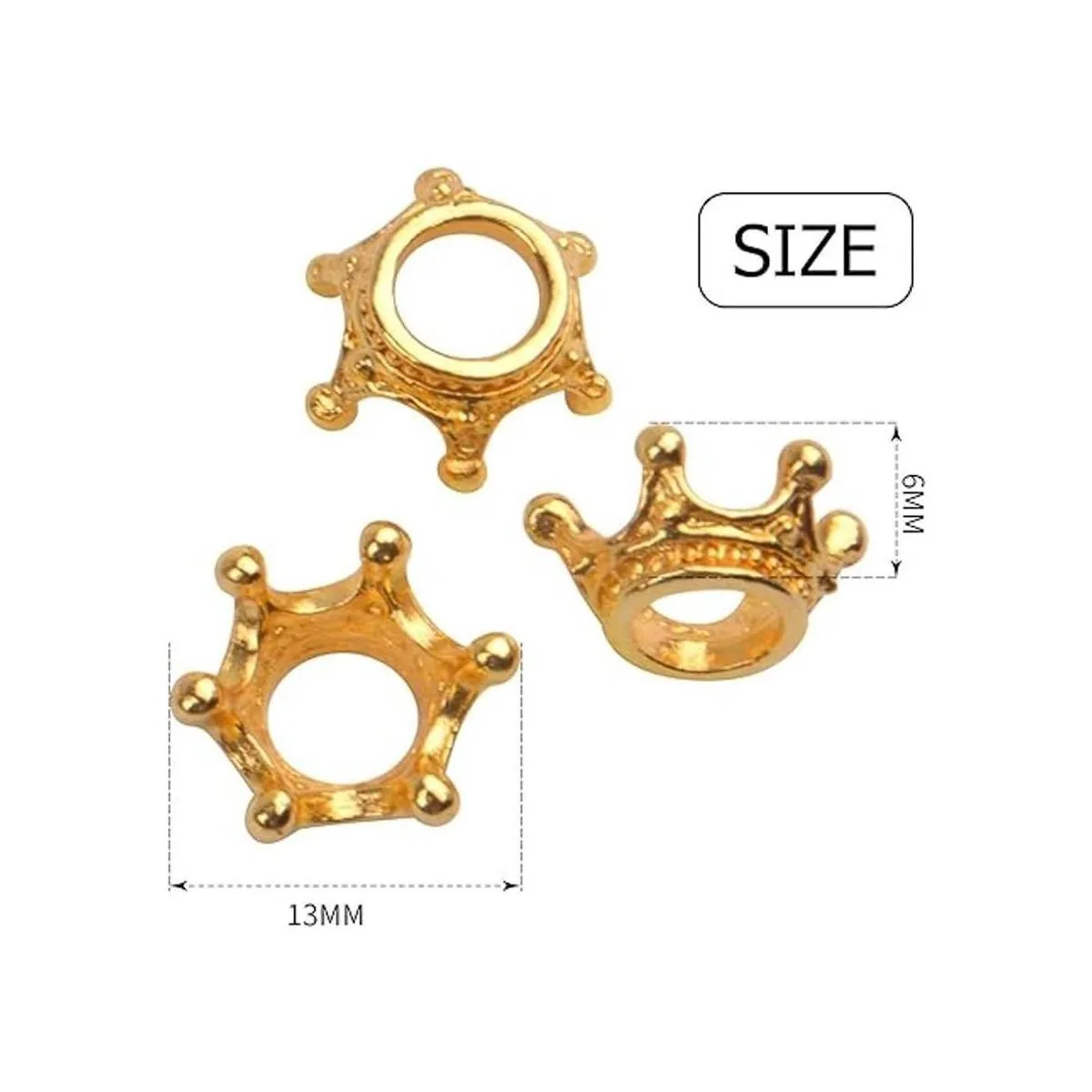 Material de calidad: hechas de aleación de metal de alta calidad, estas cuentas de corona son resistentes, no se deforman ni se decoloran fácilmente.