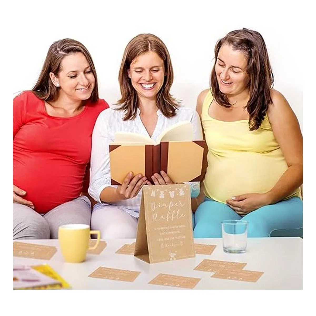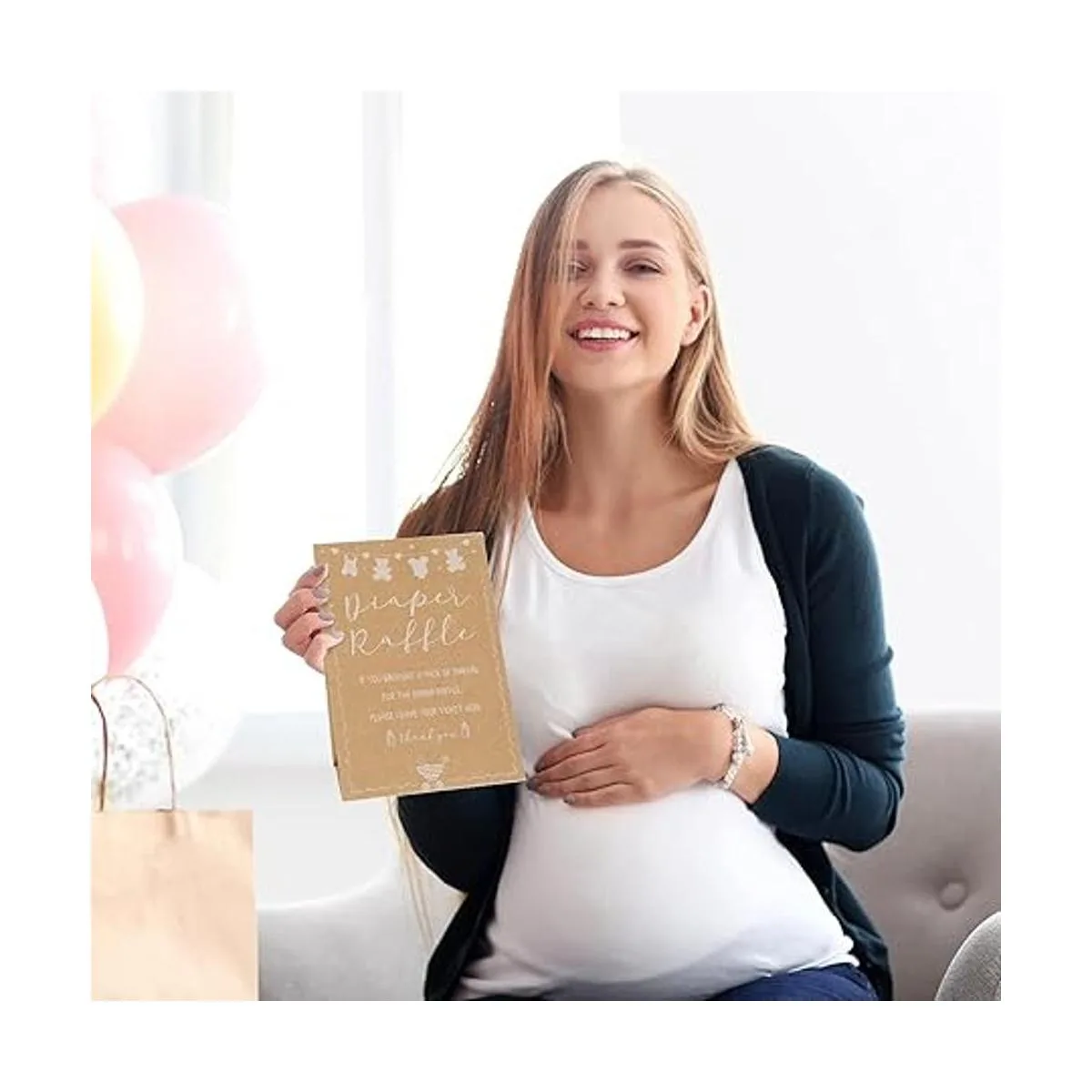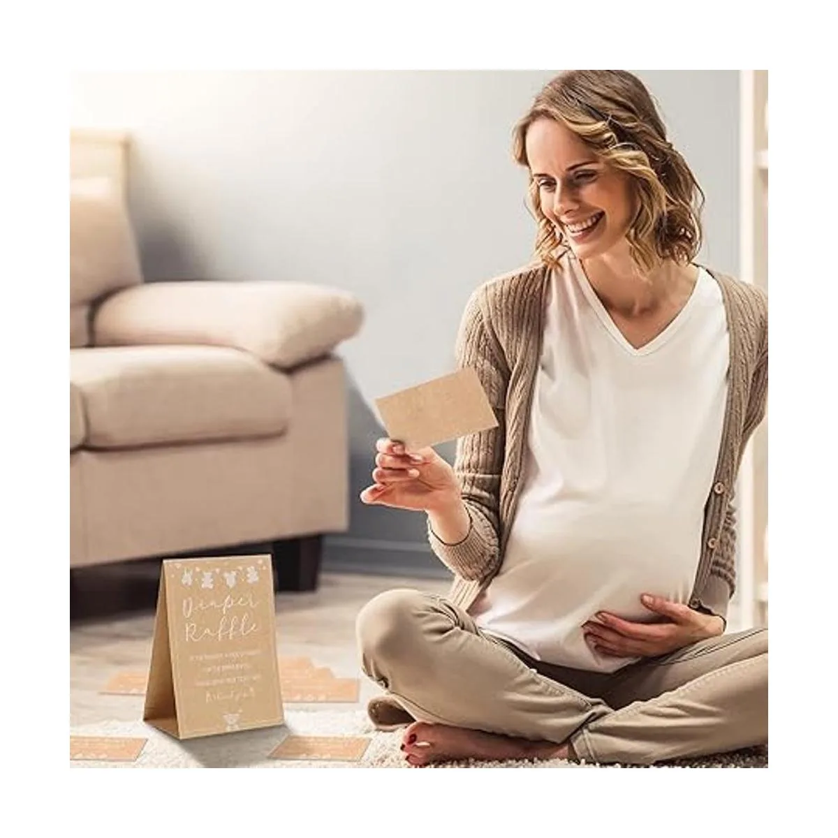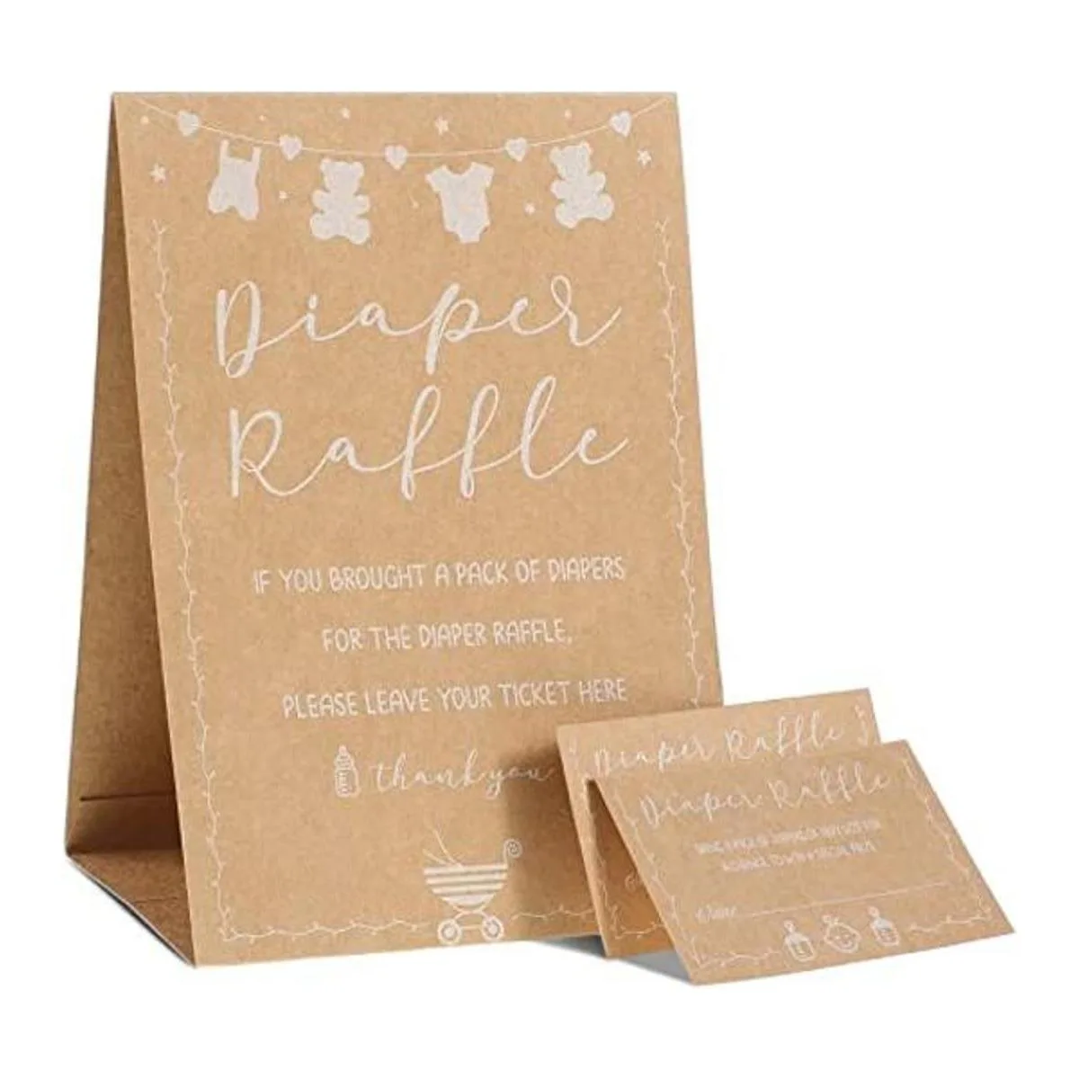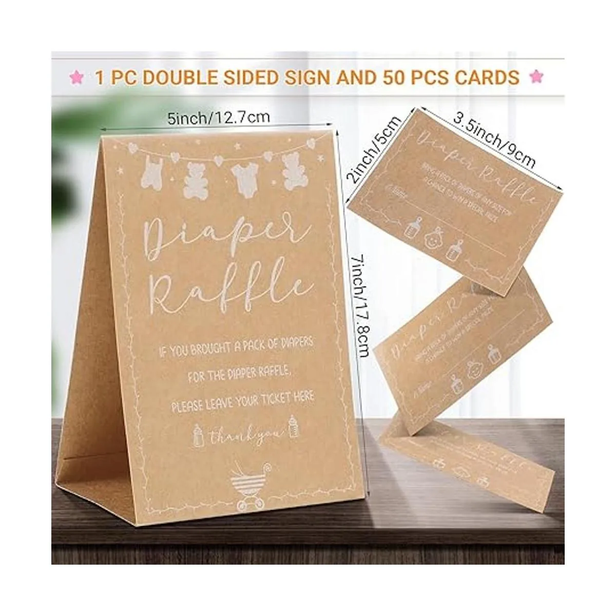 50 boletos de rifa de pañales y 1 letrero para baby shower, invitaciones de baby shower con tarjetas de rifa de pañales, papel de estraza para bebé, boletos neutros para baby shower, suministros de decoración de fiesta