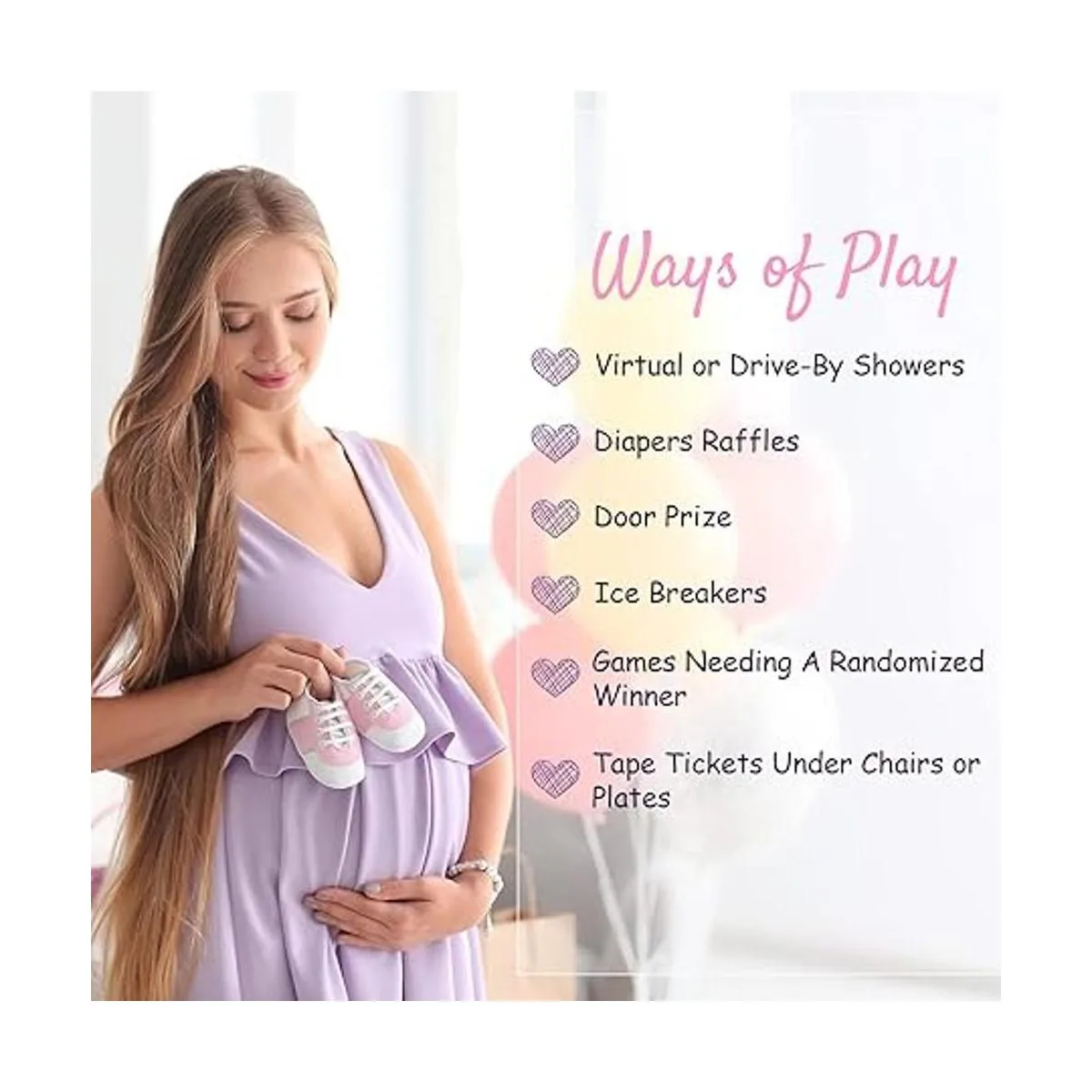 Contenido del paquete: recibirás 50 boletos de rifa de pañales neutros de género para baby shower y 1 letrero de doble cara autónomo, pueden satisfacer los requisitos de fiesta de 50 invitados al mismo tiempo con un solo paquete del juego de tarjetas de juego, muy agradable para juegos de fiesta de baby shower