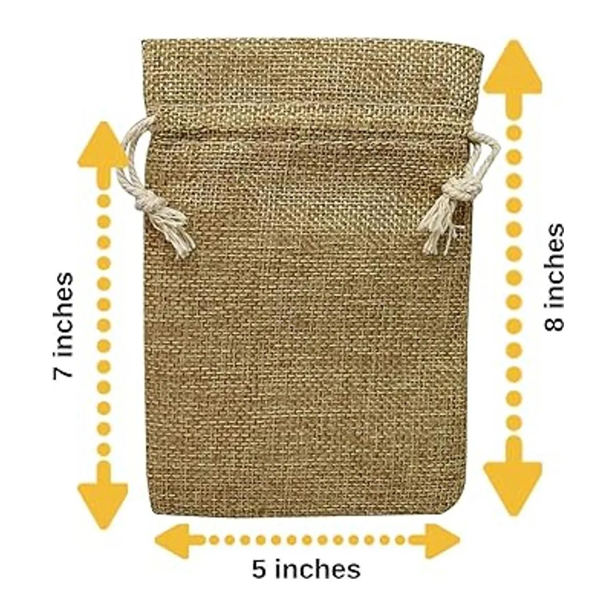 Excelente valor 50 bolsas a granel, bolsas de yute de 5 x 8 con cordón.