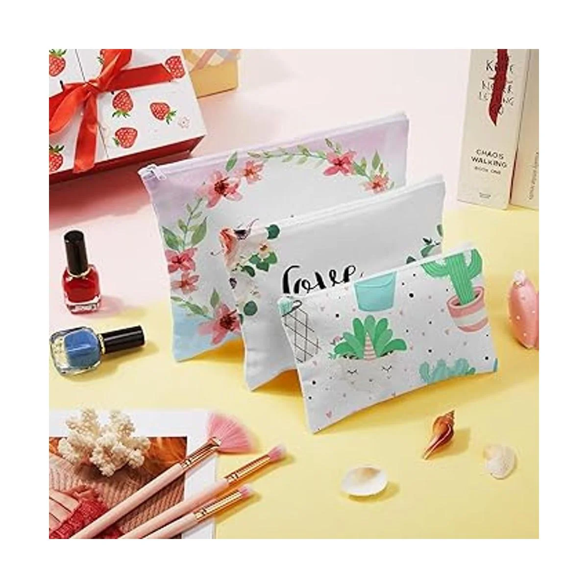 3 tamaños a elegir: estas bolsas de maquillaje de transferencia de calor tienen 3 tamaños, miden aproximadamente 9.1 x 6.9 in, 7.9 x 5.7 in y 7.1 x 4.3 in, diferentes tamaños de bolsas son prácticas para guardar varios artículos y productos, conveniente para poner en fundas de viaje o mochilas, portátil para llevar durante viajes y viajes